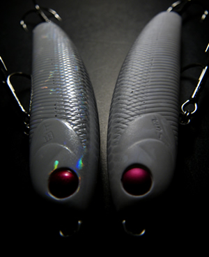 同じホワイト・ベースでありながら、 光沢による存在感で魚を魅了するか、
