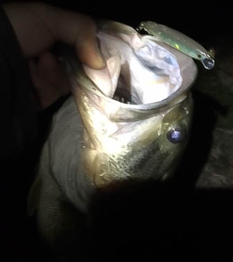 何時ものポイントに着き、リーズ周りにサミング70SPを流して、5投目で54センチがきました。その後は広範囲をチェックしてると、立て続けに釣れ、またまた運を使い果たした様な感じでした。最終、50UPをかけたんですが、暑さのせいもあり、ヘッドライトを外してたので、岸に上げるつもりが、リーズに絡まれてうまくランディングできず、まさかのラインブレイクで、サミングを咥えたまま、琵琶湖の奥深くに逃げて行きました…あえなく、ずっと使っていた、最後のサミングSPが殉職してしまい、かなりショックで立ち直れそうにないです…。