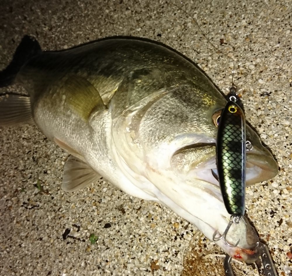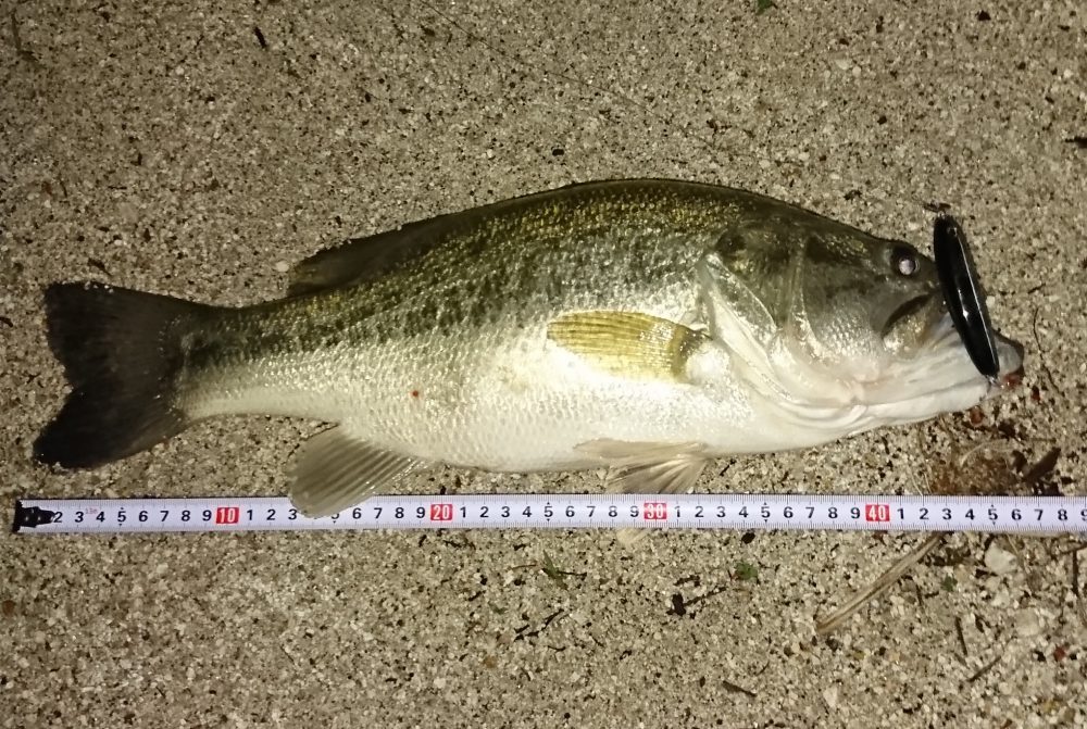 待望の雨が降ったので行って来ました。ポイントに到着すると、そこそこ強い風があっちゃこっちゃから吹いてる釣りづらい状況。こんな時、僕はサムジグMF-70CWです。横風逆風の中、パシュッ!と飛んで行き、狙いのコースを通すと…ガツン!!サイズはそこそこでしたが会心の一匹でした