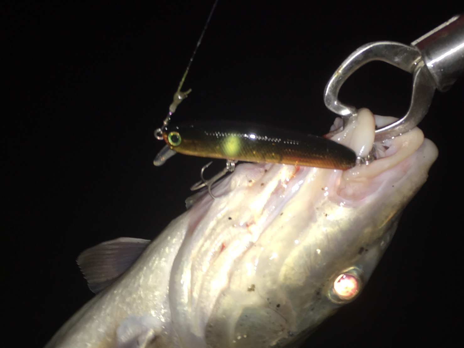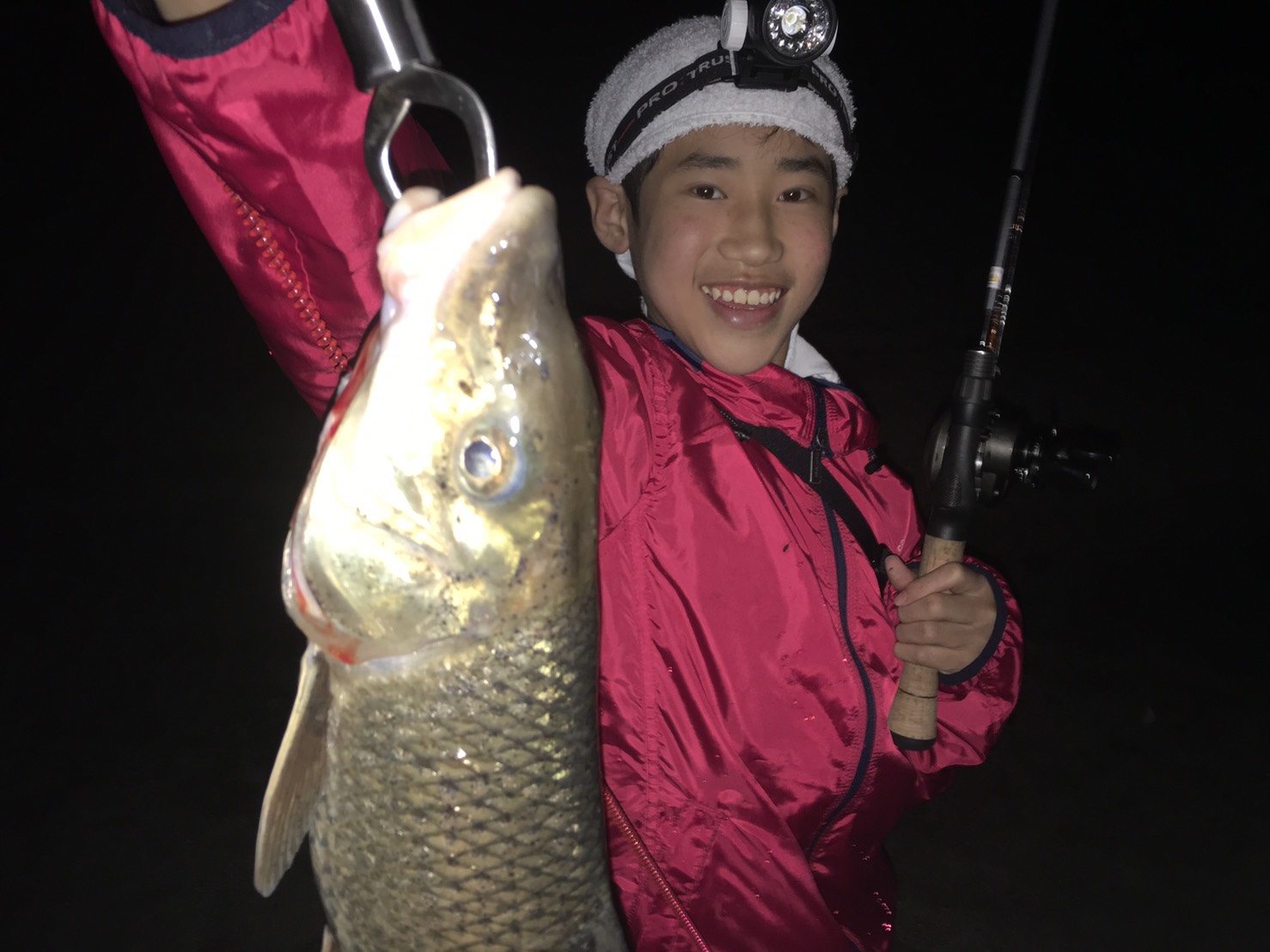 今年はじめて琵琶湖へ行きました。満月だったので夜でも明るかったです。まず最初に行ったポイントでは、お父さんが僕の名前を呼んだので見ると、何かをかけていて竿がグンと大きく曲がっていましたが、バラしてしまいました。僕にはあたりもありませんでした。ポイントを移動して、流れ込みの近くで投げていると目の前で回収しようと思った時に激しく魚が食いました。釣り上げて見るとニゴイでした。写真を撮るのに持ち上げると重い魚でした。バスは釣れなかったけど、久しぶりの釣行でとても楽しかったです。また行って、今度はバスを釣りたいです。