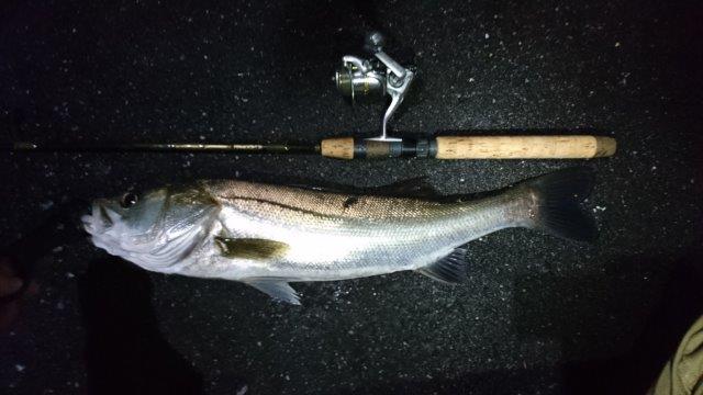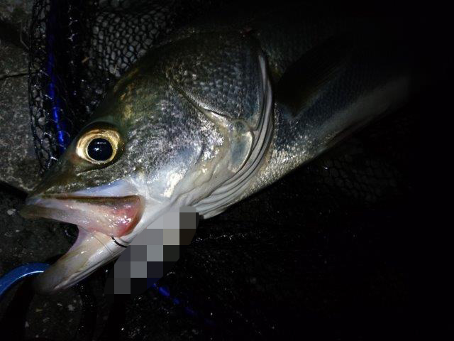 潮の下げはじめるタイミングを狙って散歩ついでにまた行ってきました。小雨なら表層へ出るかもしれないと最初はコトカスを流れに漂わせながらゆっくり巻いてみるも何も無し。続いてファットサムJrも試すもこちらも不発。甘くないです。あまり投げ過ぎて見切られるのも嫌なので数投でルアーを交換、観察しつつ場を休ませます。結局のところ今回もマル秘に助けてもらいました。サイズ感が良いのでしょうか。ガツンと来るアタリが気持ちいいです。サミング50cwでも釣れると思いますが、足場が高いのでマル秘が扱いやすいです。後は最近導入したネットで魚を掬う練習をします。