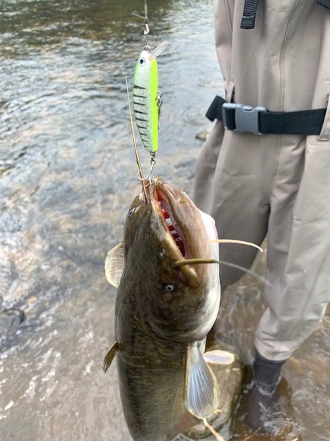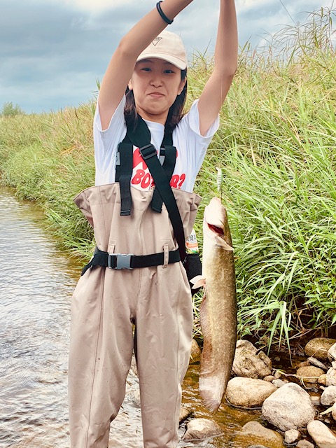 こんにちは。ミワです。MAVでのイベントとでは、みなさんに大変お世話になりました。ありがとうございました!また来年も行きたいです。この日はお父さんと川へ釣りに行きました。水面をファットサムJrでやってましたが魚は釣れません。なので少し潜るルアーに代えてやっているとググッとロッドが引っ張られました!流れの中だったので引きが凄くてリールを頑張って巻きました。釣れたのは大きいナマズでした!次は琵琶湖でバスを釣りたいです。