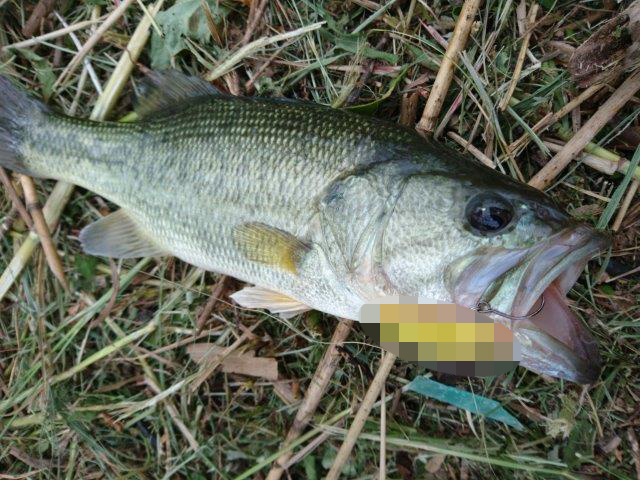 いつもお世話になっております。今回は大潮上げのタイミングで以前SUM VIBでシーバスを釣った川へ行ってきました。最近は短時間の釣りでは手軽なスピニングを使用することが多く新たな○秘の重い方もよく飛んで気持ちがいいです。着くなり広い範囲を速く巻きながら探っていると開始早々ガツンと、、、ブロックか枝かにルアーが当たりかわした瞬間でした。シーバスか?と思いきや寄ってきたのは丸々したバス。バスだと分かって慌てましたが無事キャッチ。琵琶湖で釣れるような魚体に久しぶりにしびれました。野池では○秘の縦の動きが効果的でしたが、ただ巻くだけ(わりと速め)横の動きも効きますね。しばらくして一匹追加、その後シーバスも掛かりましたが手前のジャンプで残念ながら逃げていかれました。また帰る直前、戻りながら投げていたもう1つの○秘にもきたのになぁ。油断してはだめですね。また近いうちに行ってみます。