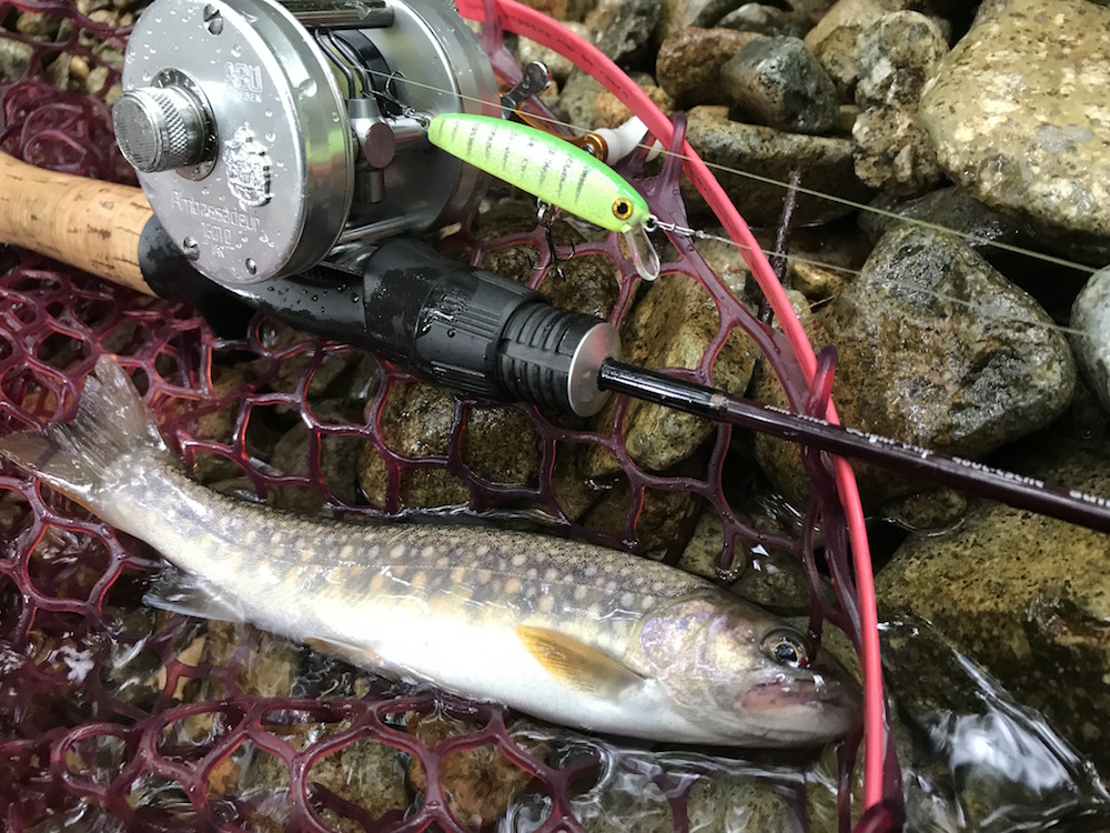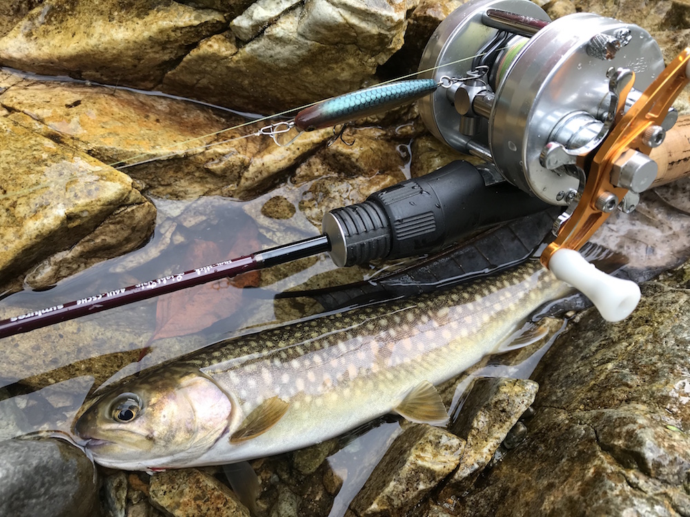 非常に忙しいタイミングだったのですが、無理を押して今シーズンの最終釣行に出掛けてきました。当然の事ながらスーパーガイドのご案内あっての釣行です。今回の河川は僕自身初めての入川となりますが、一ヶ所目までの道中では5年前に噴火をしたあの御嶽山が一望出来ます。そしてあの噴火の前年にsadda氏が訪れた際には、かなりの好釣果に恵まれたとの話です。期待も大きい訳ですが、入川までの経路というのがまたかなりハード。山岳&源流系の釣りに慣れてる方なら大した事無いんでしょうが、イージーアクセス派の僕にはまぁまぁのスリルです。何とか無事に入川するといかにもな雰囲気の流れ。はやる気持ちを抑えつつ、さあルアーセレクト・・・あ、無い・・・車にボックス忘れました。スーパーガイドと一緒で良かった。僕のボックスと同じ以上のアイテムをスーパーガイドは常備しています。そして、安堵の後にはパラダイス!と思いきや、投げても投げても応えてくれる魚信も陰も無し。どうやらあの噴火から5年経った今も魚達は回復していない様でした。聞けば噴火の当時相当量の火山灰が付近一帯に降り積もり、今も雨の度に流れ出てくるとの話です。当時生息していた魚達は全滅したであろうし、放流事業も行われていませんので長い時間を掛けて自然の力で回復するしかないのでしょう。様々な思いが駆け巡る中、最終釣行は続きます。流石のスーパーガイドは次から次へと可能性のあるポイントへとナビゲートしてくれますので、各所で徐々に釣果も上がります。しかし、いずれも渇水気味にて川通しはし易いものの渋い反応。そんな中、頼りになるアイテムはやっぱりS45cw。この日最大の27㎝の他にも、食うに至らずも誘い出せた良型数尾。頼りになるスーパーガイドと製品のお陰で今回もまた良い経験になりました。来シーズンも宜しくお願い致します!