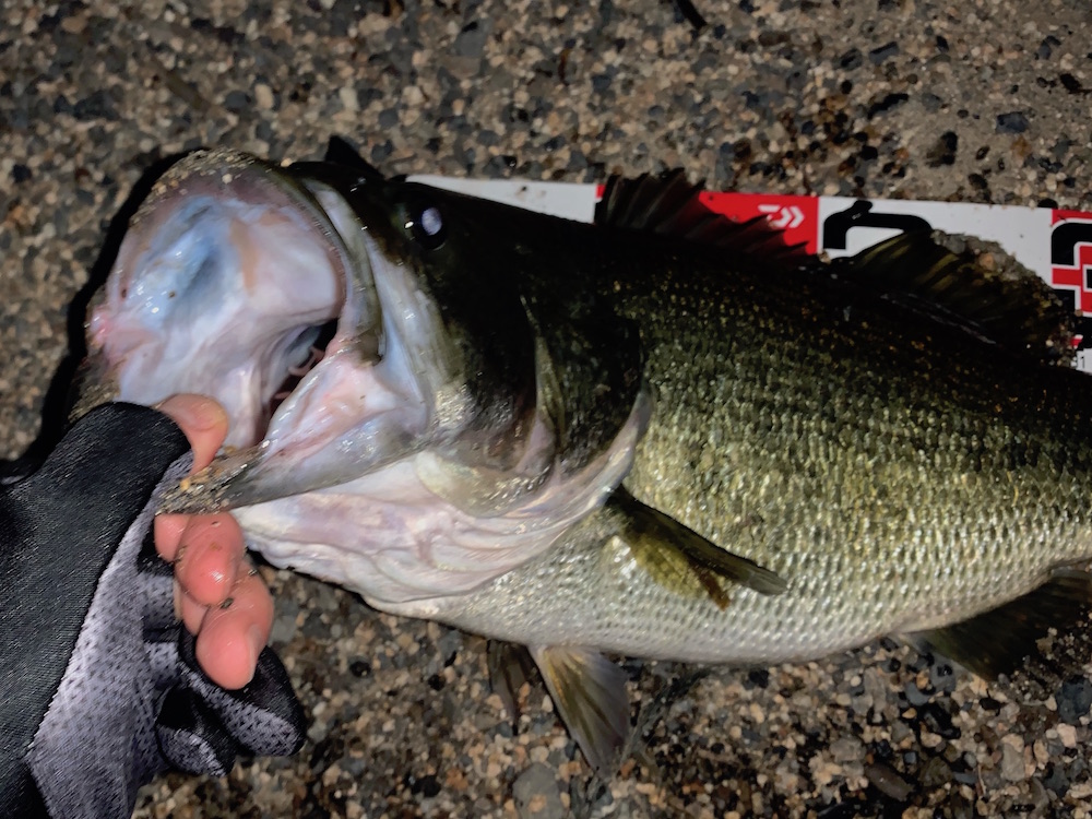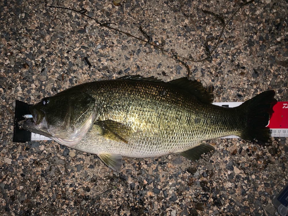 いつもお世話になっております。kamiyaです。先月も一度行ったのですがレポート出来る釣果ではありませんでした。水は少ないと思っておりましたが、今回はもっと少なくてビックリしました。11月8日17:30様子見だけのつもりで入った南湖はあまりの変わりようで・・・ここ南湖西岸は真正面の風とうねり。「風が収まり波が落ち着いたらワンチャンありそうだけど・・・」なんて思いながら風裏になりそうな東に移動。20:30ポイントへ入ると当然ですが ここも水少なっ!状態。通い慣れたポイントも全く別のポイントのようです。魚の入ってきそうな良い時間帯になる前に地形とウィード位置の確認もかねてスラローマー85SSSで広く探りながら行ける所まで入っていくと・・・遙か沖まで入っていけちゃいました。風裏とはいえここも横風に近い風がしっかり当たりザブザブ状態。大体の位置を探り、ここならと付けたchunk chopに20cmくらいのバス。水面からウィードまでの超浅いレンジでこの波でもアピール出来るにはと考えFUNA MINNOW CWやSUMING PROP105も使いましたが・・・風が弱まり波が落ち着いたタイミングでコツッとしたり、先程くらいのバスが釣れたりと、明らかに今までと違った雰囲気に集中しSF-60CWを投げ巻き出すとこのルアー特有の小さなコンッのバイト。フッキングした瞬間のロッドの曲がりからウィードの塊かも?と一瞬よぎりましたが、直ぐに2度ティップを引き込む強さに良いサイズを確信。ここでの取込は最後バラす危険もありそうなので浜にあげようとするも、振り返ると“浜遠〜っ!”かなりの距離に3度4度とジャンプされましたが、この状況で出来すぎの55cmでした。その後直ぐに風が吹き出し、また同じような状況に加え日付が変わる頃には予報通りにしっかりと雨も降りだし1:30車に戻り仮眠をするも、強くなった雨の音と車を揺らす風に目が覚めたら寝付けず。明け方に向かって雨が更に強まる予報に再開を断念し帰路につきました。SSSですが、水位が低いからでしょうか、今までが温かかったせいでしょうか