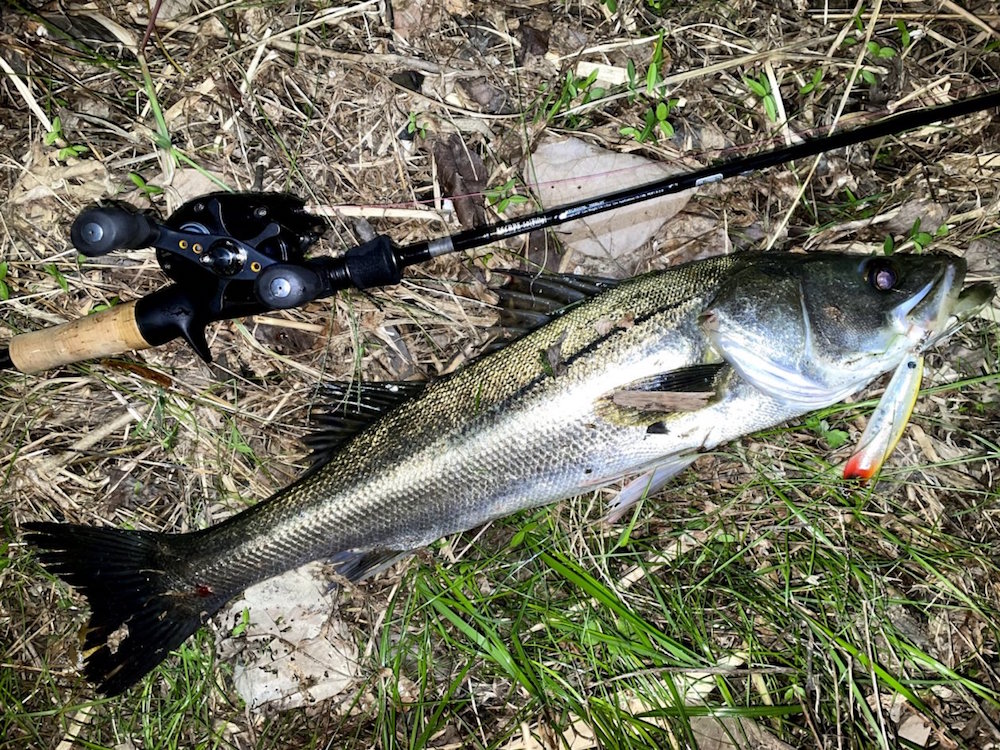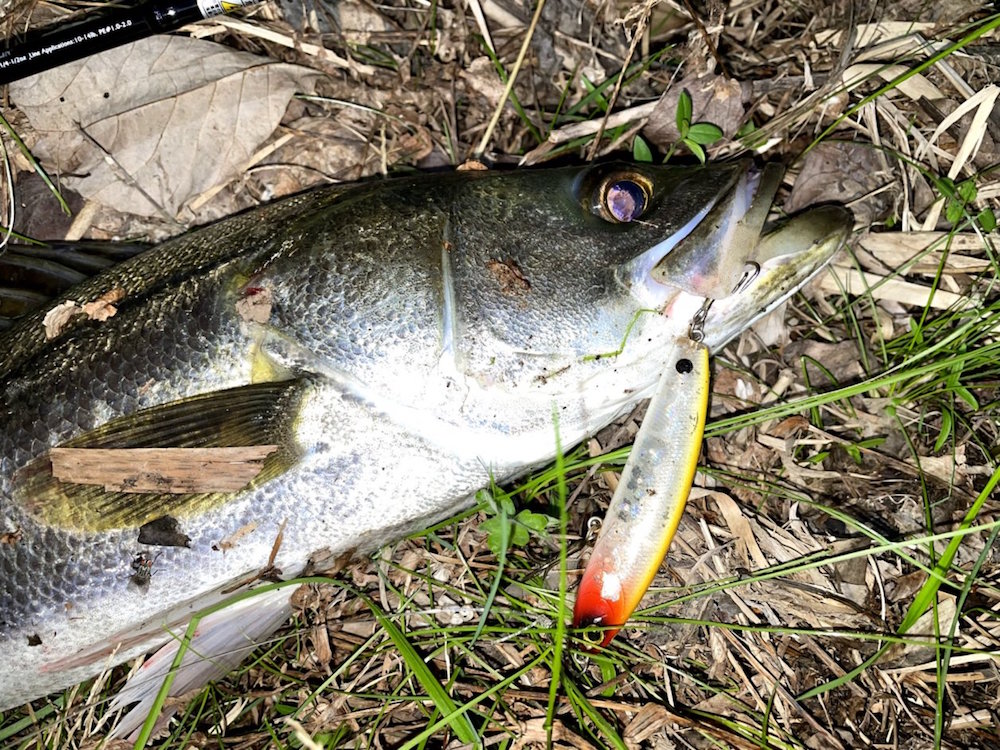 ずいぶんとご無沙汰しております。昨夜大雨が降った後の河川。これだけの雨量ならかなり期待できる状況でしたが、最近はほとんど雨が降っていなかったので、落ち葉などのゴミが水面を覆っている上に、高潮の状態で流れがほとんどないという厳しい条件でした。ゴミの間をぬってルアーを撃ち込みますが、全く反応どころか生命感もなし。こういうシチュエーションばかりになるのも自分らしいのですが、2か月ほどスズキの顔が見られていないので、今日を逃すとたぶん当分はダメでしょう。何度も投げていたのですが、最後の望みで再びスラローマー85SSSに付け替えて着水後にカウントダウン。するとコン!とささやかな反応があったので、即座にフッキング。久しぶりに聞くエラ洗いの音。劇的なサイズでもなく平凡な60cmでしたが、何十年続けていても好調よりも不調の方が圧倒的に多いからこそ価値があるのだと思っています。