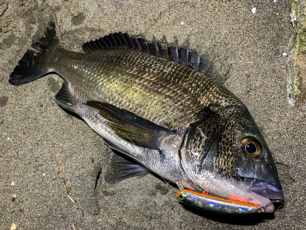 これまでサムバイブミニ 4.5にて釣果を得られていた浜名湖であるが、11/15の若潮より大きな変化があったようだ。先にレポート報告があったHoriuchi氏との同行釣行でもその変化は見られつつあり、あれだけアタリのあったサムバイブミニ4.5が失速気味。キャッチ数はともかく、アタリの数が明らかに少なくなったのだ。それを確かめるべく11/18に単独釣行。下げ始めより同ポイントへエントリーできた。流れが出るまではボイルはおろか生命反応が感じられず、抑えのアイテムとして活躍しているサムバイブミニ4.5(氷魚)で小さいヒラセイゴをかけるもフックアウト。その後は音沙汰なし。魚が抜けてしまったように感じたが流れが出始めてからベイトが入り始め、シーバスのボイルが出始める。弾かれるベイトを見ているとこれまでのゼンメ(ヒイラギ)とは違って、どうやらサッパかイワシに見受けられる。そこでルアーをサミング70SP (タングステンシートを貼ってウェイトを1g増)にチェンジして、ストラクチャーギリギリに落とすとヒット。妙にエラ洗いしないなと思っていると、またチヌの登場であった。どうやらストラクチャーギリギリに落としたことで、落とし込み釣りの理論で釣れたようだ。次に結んだのはリップレスサミングSP (タングステンシートを貼ってウェイトを1g増)。ダウンでストラクチャーの横に出来ている流心をストップ&ゴーで丁寧に探ると引っ手繰るようにヒット。流れの中でヒットしたため、良い引き味であったが…痩せ細った50センチほどのシーバスであった。魚のコンディション、ベイトの変化、また下潮の早さと水位の下がり具合から魚の群れ全体が変わり、ようやく浜名湖は本格的な晩秋を迎えたようだ。これまでサムバイブミニ 4.5がかなり強力であったが、これからはスラローマー70やサミング70S、スラローマー85SSSが強くなってくると感じる釣果であった。このベイトと魚の切り替わりのタイミングは難易度が高いと個人的には思っている。それはこれまで築いてきたパターンを一度排除しなければならないからであり、汎用性を持った攻略でなければ魚が居てもノーフィッシュで終わることもあり得るからだ。今年は浜名湖がどう変化していくのか、そしてどのようなパターンになっていくのか…。引き続き調査してみたいと思うところである。