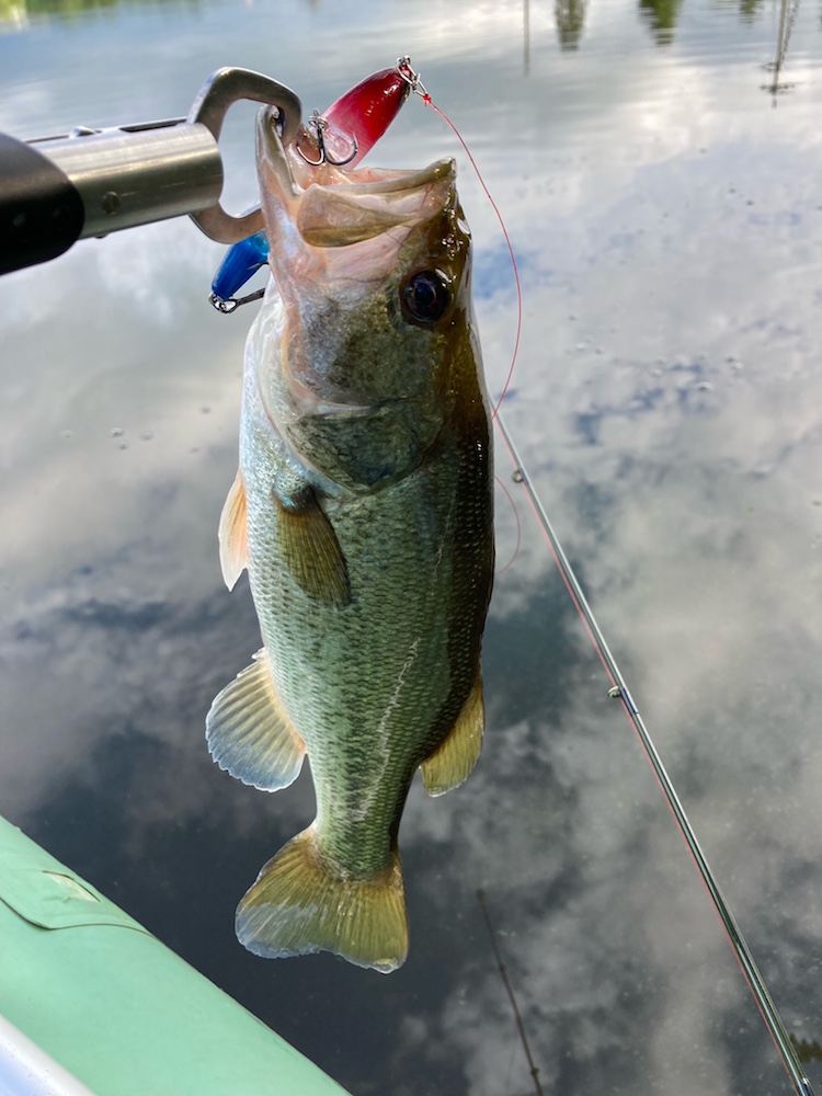いつもお世話になっています。雨後の様子を見にいつもの内湖に行って来ました。急に天気になったので、予定より1時間遅れてのスタートです。無風でしたが、アオコも少なく水質も良さそうです。期待していましたが、結果はバス2匹と恵みの雨にあやかれませんでした。強いて言うならトップに派手に出たのは良かったです。内湖は陸っぱりも含め貸切で、ある意味厳しいから貸切でといったところでしょうか。ありがとうございました。