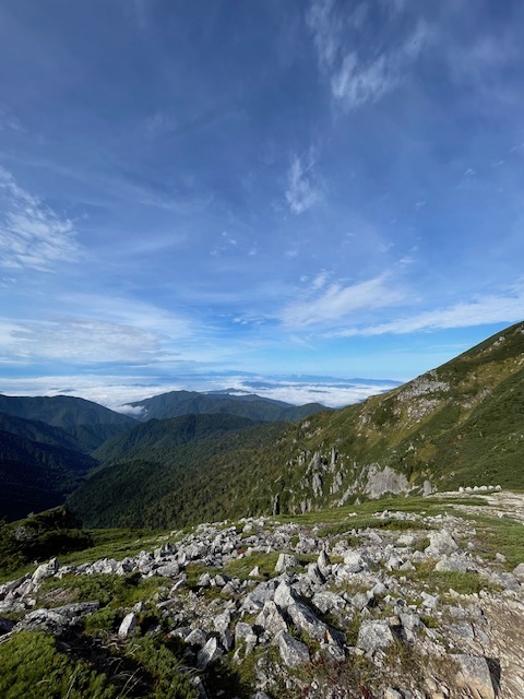 そして三日目。今日は移動のみ。標高1500m下げ、コースタイム9時間。距離は18kmと最終日にして最長の山行だ。黒部五郎岳をはじめ標高2500m以上のピークを7つ踏んでヘロヘロになりながら無事下山口に到着する。