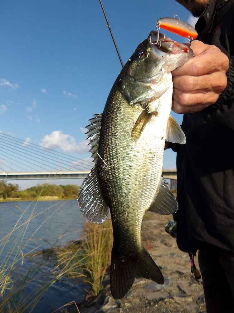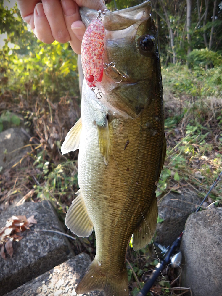 相変わらず釣り人が多い淀川。なるべく人を避けてトップでランガンするも全く反応なし。(まぁいつも通りですが)トップは夕方にしようと思い、自作アワビ貼りチャンクにチェンジ。ゆっくり目で巻いているとグン!グン!とアタリがあり、ひったくっていく魚の姿が見えました。ハイプレッシャーの淀川でも釣れたのはアワビ効果か・・・そんな訳ないか、チャンクのおかげですね、ありがとうございました。追伸、同行者のモーリーもサムバイブ13GDで釣ってました。