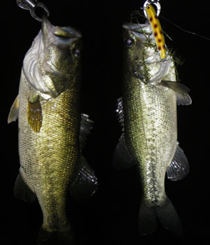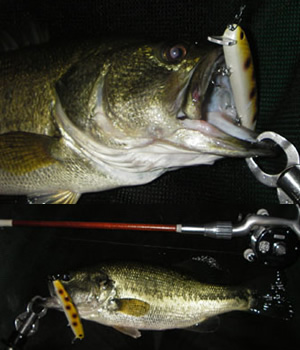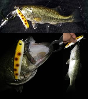 | 社員A君から「仕上がったブツがあるで」と連絡を受けたのが少し前。しかし、貧乏暇なしです。気がつくと6月も終わりそう。そろそろ現場確認せんとなーと考えて、おっちゃん所にフラリと行ってサンプルを入手。久々の琵琶湖!なんと本気で行くのは8ヶ月ぶり!バスにしてみたら完全に浮気者ですわ。20:00にポイント到着。先行者は車3台でした。フローターを膨らまし、入水ポイントに久々に立つと沖からボートが1艇着岸準備中でした。話しを聞くと昼間は雷魚がいっぱいでズタボロですとの事でした。雷魚かー、たまにはええかなんて考えながらまずはサミングプロップのチューニング開始。一先ず投げて、なるほどねー。もうちょいペラが派手に動く様にして、もう少し潜らん様にして、ポイッと投げてお決まりのジョボジョボはいい感じになったのでアイを微妙に調整してみまして・・・・いざ本番1投目!でいきなりチビさんが挨拶してくれました。嬉しい、浮気物の僕にこの時期のバスは優しい。しばらく流して行きながら、本命ポイントの沖合を何気なく探って行くと反応はあるものの喰いきらん感じ。こら参ったなーと考えてもバイトは小さくすぐにバレます。ならばと少し激しい感じでダイブしてそのまま深度をキープしてゆっくりと巻くとようやくヒット。それなりのサイズです。そんな感じで10 匹ぐらい掛けて気がつきましたわ。季節の関係もあるかも知れませんが、今までにはないくらいの小型の反応やバイトが多い。浮力の関係上なんかあるのかも知れません。ウッドより泳層のキープ力がいいのでしょうね。しばらくして、ようやく40upが釣れました。するとボートにエレキの兄ちゃんがやってきて「釣れてますねー。僕は全然釣れません。ダブルスイッシャーで狙ってるんですけど何使ってはるんですかー」「釣れますよ、チビですけど。ミノープロップですわ。 頑張ったら釣れますよきっと!」と丁寧に対応しときました。しかし、期待していた山からの風は吹かず、ウネリもなく、やがて月が照りだす。 最後の手段です。ストラクチャーの陰を狙い、かなりタイトに探って数 カ所目、ジョボジョボでゴチンと50ぐらいのが採れまし た・・・・次の1投でジョボジョボからのグン コトン グン コトン でドッカーンでした。久々に愛竿がバットから曲がります。やっぱりこれやで!とご機嫌に焦りまくってドラグを緩める失態もありましたが無事50後半をキャッチ、久しぶり過ぎてサイズよりもやり取りが楽しい(ひさしぶり過ぎてメジャー忘れてました。完全に言い訳です)もうええ時間やったので帰り道中に岸際のウィードエリアもちょいとチェック。今度はデッドスローで50チョイ。その後もチビが相手をしてくれます。今から思えば魚のサイズに関係なくサミングプロップを喰って来るのには驚きです。ウッドプロップと比較すると安定感を感じましたわ。ウッドの方が暴れ ん坊で、サミングプロップは優等生ってな感じ。しかし、微妙なセッティングで暴れん坊にもなりそうな要素もあるなー。と言う事で、行けますわサミングプロップ!これでようやくボロボロのウッドプロップを休ます事が出来そうです。あっ!次からメジャーは必ず持ってきますわ。おっちゃん、お楽しみに。 | |||