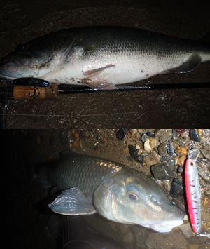 | サムルアーズファン川組がクラウディナイトに誘われ、ふらり水辺に。いつの頃からか「休日だから釣りに行く」から、「条件が良ければいつだって出撃するゼ!いやもう気になって我慢できるか!」に。そりゃ狙って出かけるのだから釣れる確率も上がる。琵琶湖に近い釣人を羨む時もあったけれど、なんのなんの、良い場所は他にもあるはず。自分の釣り方がある程度確立できてきたら、そのスタイルで色々な場所で釣りをすることで、自分にあった釣場が見つかるはず。今回の場所は知っていたけれどイマイチだと思っていたところ。サムルアーズで覚えたラージの習性。絶対岸近くにいると決めつけ、そろりそろりとアプローチ。一投目は場をスレさせず、次の一手に繋げられるリップレスサミング70SP。ダウンストリームのスローリトリーブ。ぼちぼち回収かなと思っ たときにマジで〜!?と思わず声が出た50超。投げる前に水面をライトで照らしたり、いきなり入水のお水遊びなんてしていたら釣れなかったはず。だってそこは水深50センチ。さあ釣ったし帰ろか!なんて思うはずもなく、予想通 り今夜は釣れるはず。ちょいとポイントを外して、以前ボラの子の群れを喰いまくっていたラージを思い出す。ちょいと時期が外れていたのでボラの子はいなかったけれど、スズキも釣れへんかなあとクロスストリームで流していたサミング90CWに50弱のラージ。いいね!こうなってくると勢いは止まりまへん。あきらかにニゴイの付き場であろうピンポイントで狙って2尾を釣り、ラージよりめっちゃ引く〜!と楽しむ。そして帰宅時間が迫るラスト。あ、もうタイムリミ ットとうに過ぎてるやん・・・。あと少し、あと少し投げたい。その先に何が待っているか知りたい。岸際にコトカスミディアムプロップをダウンで流す。モワッと水面 が揺れる反転。くっそ・・・デカそ。その後フォローがきかず、次のポイント。サミングプロップ70をダウンストリームで流す。コツと魚信、頼む・・追い喰いしてくれ・・・ゴツ!しかしフックアップならず。あー!絶対デカいわ。次に同じことをしてもアカンやろなと、リップレスサミング70SP。水深約2メートルの場所だけど、初冬だけど、気温6度だけど、水面 に喰ってくる。サムルアーズはそういう元気のある魚を釣らせてくれる。だってレポートに出てくる魚、みんなごっついコンディションやもん。ガツン!と喰った瞬間ドラグ突破!おーおーどこまで走るねん!3秒ほど主導権を持っていかれ、完全にニゴイのスレやん・・・。と、思いきや!ドバドバ!と重々しいエラ洗い。おーおーニゴイのやつ頑張りよる。えらいよー引きよるわと1分弱のやりとりを楽しみ、足元まで寄せた魚はなんと55超のラージ。な、なに!!LLサミングが外掛りして口を閉じられる状態だった。そりゃ走るわ。まだ釣れるで、投げたら釣れるで、でも時間ないわ・・・朝が動きだす。悲しい。ということで、欲深い釣人は24時間後にも水辺に立つのでした。 | |||