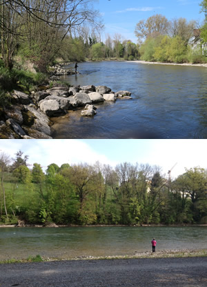 | M家夫妻、嫁、Sコです。N.O君夫妻がドイツベルリンより日本に帰国してしまい、サムルアーズヨーロッパ調査報告を引き継ぐことにしました。2週間ほど前、M家君が所用でスイスはチューリッヒに行きまして、その際近所の川で釣りをしたところ、70cmのブラウンが釣れたとのこと。まだ寒い3月のことだったので、4月になった今、鱒達はもっと大きくなってピチピチ川に溢れているに違いないと、2度目の用事の際は同行することに。スイスはとても物価が高いのですが、今回はただで泊まれる場所があるとのこと。と、いうわけで一日で終わる仕事に対し3泊4日のスケジュールで滞在することに。ベルリンから飛行機で小一時間、チューリヒの飛行場から路面電車とバスで小一時間、あっという間に目的地に到着です。飛行機が朝早かったので前日からほとんど寝ていなかったのですが、あまりのいいお天気に仕事は明日にして早速釣りをすることに決定。宿泊場所から歩いて10分の釣具屋に行き、許可書を買います。チューリヒは、湖のエサ釣りのみ無料ですが、ルアーやフライは有料で、釣具屋で許可書を購入出来ます。権利が買える川やエリアは釣具屋によって違います。ここでは一人当たり1日24フラン。大体2500円です。安いのかな?因みにスイスではランチでパスタを食べると大体2000円はします。どんな所でも表参道価格と思って頂ければいいかと。そう思うと安いのかもしれません。途中スーパーで買ったクロワッサンを齧り、高い高いでも旨い、とブツブツ言いながら再びバスを乗り換え許可書のある川に向かいます。川幅はおおよそ30m、左わきに小さい小川もあります。鴨川っぽい雰囲気です。小さいダムから下流2つ目の橋までの間大凡1kmがその許可書のエリアです。早速ダムの端からルアーを投げ込みます。反応なし。次のポイントに移ろうかと思ったその瞬間、先ほどから複雑な流れの、なんだか良さそうなポイントにサミング70を投げていたM家君の竿がしなりました。「きたっ!」ランディングすると30cmほどのブラウンです。前回70cmを釣ったM家君には期待外れのサイズだったようですがなかなか良い滑り出しです。期待に胸を膨らませながら次のポイントに移動。次の橋の下は、前回大物を釣り上げた釣果があるので集中して取り組みます。アップクロスにサミング50を投げ、少し流してからトゥイッチしながら引き寄せてくる、それを何度か繰り返すと、当たりアリ!しかし、足元にくるとアユサイズの可愛いブラウン君で、結局写真を撮ろうか悩んでいる内にばらしてしまいました。それからというもの、返しがないせいか、釣ってもつってもバラしてしまいます。N.O先輩曰く、PEの糸は遊びがないからばれ易い、とのことです。なるほど。しかも前回の釣り旅行の際、竿先を折ってしまい、竿先がないまま修理したため、竿が固く、更に遊びがない状態になっているのです。正午を超え、人がどんどん増えてきました。それまでもジョギングをする人や犬の散歩をする人が沢山背後を過ぎ去っていたのですが、ピクニックや日光浴をする人たちが川沿いの芝生にいっぱいです。その中を歩いて、川の反対側に移動してポイントを探していると、あれれ?周りにいる人達の様子が少し変です。男も女も素っ裸です。私たちはヌーディストビーチならぬ、ヌーディスト川岸に迷い込んだようです。ヌーディストの人達は人に見られることが平気なのですが、私は見ることが平気ではありません。どこに視線を合わせれば良いかわからず、とりあえず偏光グラスをかけて私の表情を読み取られ無いようにし、ポーカーフェイスで100人ぐらいいるヌーディスト達の中を竿を持って通り抜けると、やはり東洋人の私たちは否が応でも目立ってしまい、話しかけられますが、相手は裸のオジサンです。適当に返して、先を急ぎます。目指していたヌーディスト川岸の先端は2つの川が合流するポイントで釣果が期待出来たのですが、やはりそこにも真っ赤に日焼けした裸の人が寝そべっていたので、泣く泣く諦めました。夕方、再び午前中にM家君が釣ったダム横の場所に入ろうとすると、その場所でアフリカ系の陽気な男性4人組がおしゃべりに夢中になっていたため仕方なく、少し離れた所で竿を振っていると、2人組のお巡りさんが、M家君に話しかけています。どうやら釣り券のコントロールの様です。釣りのコントロールでお巡りさんがやって来たことは初めてです。M家くんのルアーを見て、何やらわあわあ言っています、どうやら返しの潰し方が甘いとのこと、30cmオーバーは一人3匹まで持って帰っていいのですが、小さいものを傷つけない様気をつけろとのことです。お陰でバラシ続けていますが、仕方がないですね。寂しいので前回のM家君の鱒の写真も載せます。 | |||