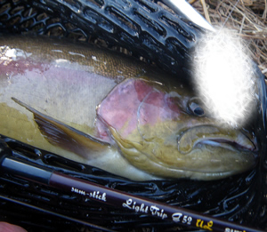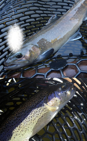 | スンマヘン、スンマヘン、ご無沙汰しましてスンマヘン!相変わらずの忙しさで現場(釣り)復帰とまではいきませんが、徐々にペースを取り戻したいと思っております!さてさて今回はリフレッシュも兼ねて遠征に行ってきました。それもお馴染みスーパーガイドsaddaさんが自らのホームと称する、やや謎めいた管理釣り場“朝霧池”です。豊田市にあっても京都市内から約2時間半と意外に近い。そして意外だったのはもう一つ、結構標高が高いし寒いし。厳寒期は一面に氷りが張るのも納得です。で、今回は我々の他に愛知県在住のあおぶるさんも修行の一環としてお誘いしてみました。まぁ始める前からタフコンディションはこのエリアの基本コンディションと聞いていましたので、簡単なポイントの説明をsaddaさんに教えてもらって各々気負い無く始めます。いや〜まさに池って感じですよね〜なのでポイントを探し、想像するのが面白い!人工的なエリアで沢山居る魚をあの手この手で狙うのも面白いんですが、地形の詳細が不明かつ放流量も不明(多くは無さそう)ってのが良いんです。多分一般ウケはしないんでしょうが。A級ポイントは既に先行者の方が陣取っているので4人で手分けして探っていくと○秘にヒット!・・・イワナ?どうも釣り大会用にはなされた魚で結構レアな存在とか。それにしても○秘がいきなり魚を連れてきましたわ。実は今回ラインをフロロに変更して挑んだのですが、これが結構良かったのかもしれません。しかしその後ぽつりぽつりとアタリがある程度でヒットしません。この日の朝に急激に冷え込んだ影響もあるでしょう。日が昇ると活性が上がるのかも知れませんが、快晴ってのもちょっとね〜取り敢えず広く探ってみると○秘でアタリが連発するポイント発見。元々フッキングが難しいアイテムですが、難攻不落?の朝霧池でこれだけアタリを取れるのは励みになります。サム山岡も結構アタリを取ってはいるんですが、なかなか掛からず、ようやく大物が掛かったと思ったら痛恨のラインブレイク。saddaさんも僕の目の前で何発もバラシてました。しかしスパーガイドはさすがですね。結構難しいテクニックでヒットさせてます。真似てもなかなか再現出来ませんので、我々は巻くだけの○秘で押し通します。苦戦している様子のあおぶるさんにも○秘を使ってもらったのですが、やっぱりアタってくる様ですね。良いんだと思います○秘!そしてタイムリミット午後2時目前に社員Aに45センチクラスのホウライマスがヒット!その前少し前にも同じサイズをバラシているので、○秘の実力をしっかり確認出来たのと後ろ髪引かれる思いでこの日の遠征は終了となりました。さあ、次は何処で試してみようか。 | |||