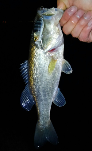 今夜も仕事関係の飲み会で湖畔に着いたのは日が変わる直前でした。下戸なので飲み会後でも釣りに行けます。今夜の気分はライトトリップ52UL。サミング70SPで子バスがヒットしますが、ドラグ締め忘れでバラし。チャンクで33センチでした。寒かったです。