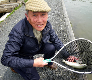 風が強いのは分かっていましたが、無理矢理行って来ました。前回と同じくスローなリフト&フォールで社員Aは3バイト。サム山岡は13Gのみで6バイト。今は丁度使い易い水量ですが、もうそろそろ田植えの水が流れ込んでくるかな。