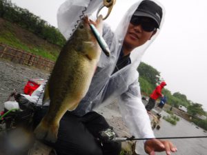 ド〜ンと6.2lb.を勝田くんがキャッチ!