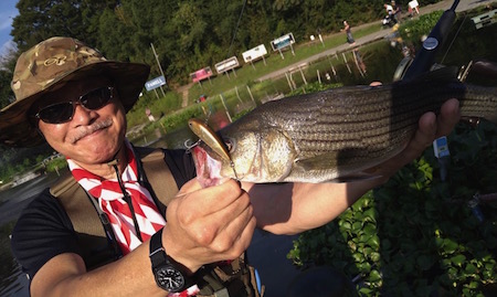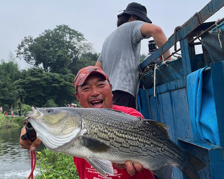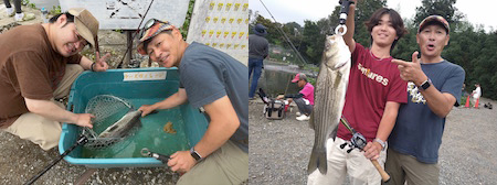 夕方以降からは自分も加わり試し釣りさせてもらいましたが、短時間にストライパー2本、バス1本の好釣果!明日はイケルで〜の感触。