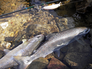 (近畿某川本流の尺アマゴと27センチ/釣り人・ZONさん)