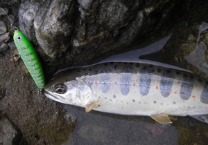 これは目視出来るが他のルアーを無視するイワナも良く反応します。