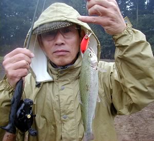 井上社長にお願いをして虹鱒の保養池でテストさせてもらって事がありました。