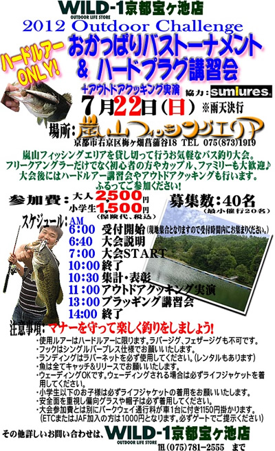 WILD-1京都宝ヶ池店主催の“おかっぱりバストーナメント”が催されます!