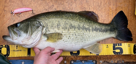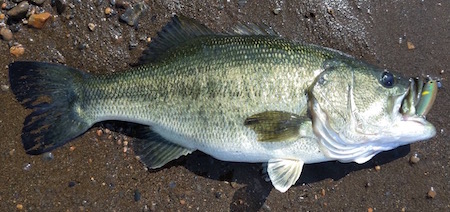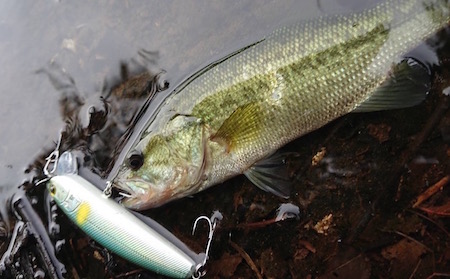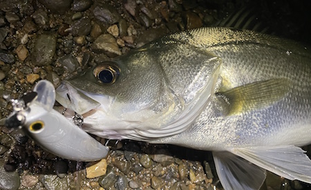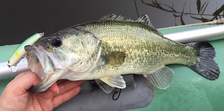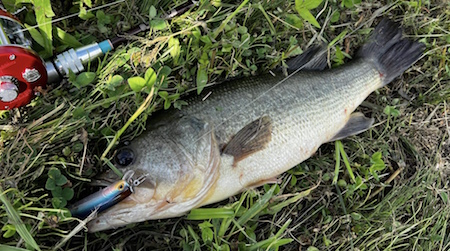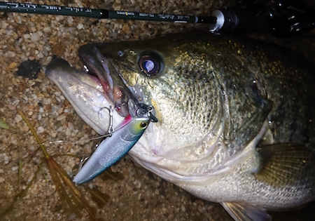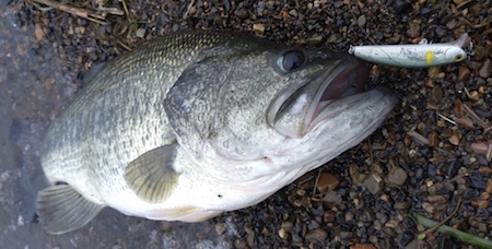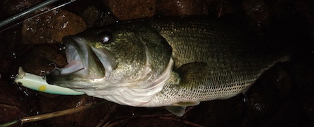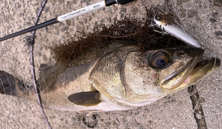そして、この初期型プロトでの最初釣果はバスでした。