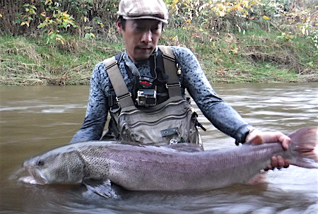 2020年の釣行動画の最後に登場する大型のイトウが