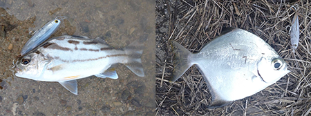 コトヒキ、ヒメツバメウオ(通常は釣れるとしても小さいワーム)