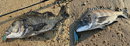 お得意のチヌトップ以外にシーバスも釣ってもらってます。