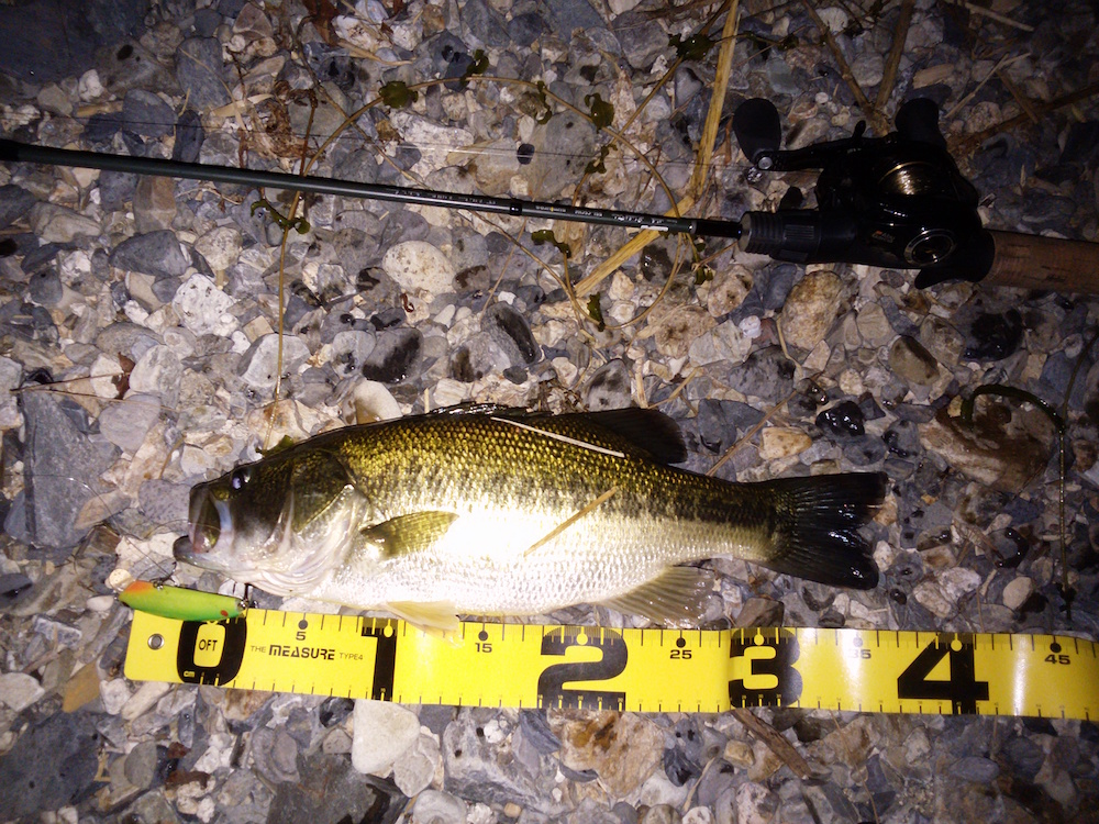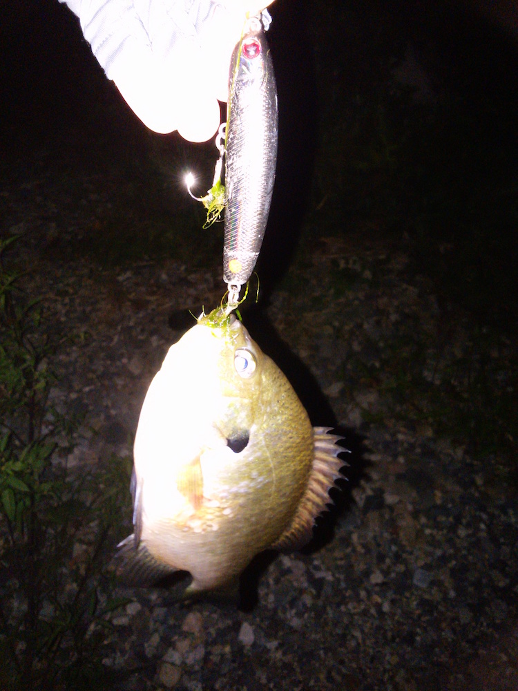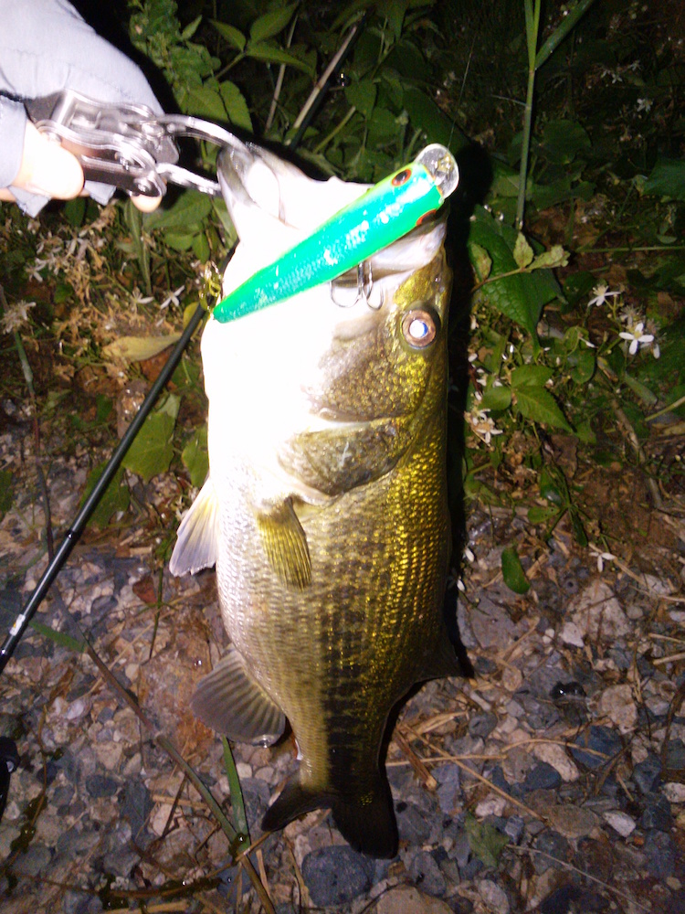 なかなか釣果が得られず、ポイントの見切りと基本であるアプローチを見直して釣行いたしました。今日は、前日大潮→中潮、潮目もフィーデインングの時間帯に近くかなり期待して湖西の浜へ!!基本的なことができていなかったので、足音を極力立てず、しゃがみ込んで、草むらに身を潜めて実釣!岸寄りは、コトカスM、沖はSlalomer、曇りで月明かりがなく、チャートカラーを軸に探っていきます。1か所目反応なし、2か所目は、月明かりが差してきたので、ブラックへカラー変更しSlalomerでギルがヒットがしました。折り返しで1か所目をもう一度Slalomerで探るとギルの当たり、ギルの浮上をイメージして、chunk-ssrで、1-2秒浮上を規則的に入れながらリトリーブさせるとかわいい小バスがヒットしてくれました!久しぶりなのでやった~です。実績のある3か所目の流れ込み反応なし、4か所目は、最近見つけて2回目のポイントですが、草むらに息を潜めて岸寄りにキャスト!1投目でスローリトリーブでヒット!!久しぶりにLight Trip が大きく曲がり、初めてベイトリールでドラグ音が!!”グググ”と少し待っているとその後は難なくランディング。結構いったかと思いましたが、36cmのバス、湖西バスはタフガイぞろいです!その他、5か所目流れ込み、6か所目河口周辺、ブレイク沖も探りますが反応なく納竿となりました。釣果が得られましたが、コトM・チャンクssrの大切なライムグリーンをロス、再販をお願い申し上げます。小さい子バスでも嬉しいですが、最初に目標を立てたsumluresでのロクマルの夢を抱き、釣行に励んでいきたいと思います。ありがとうございました!!