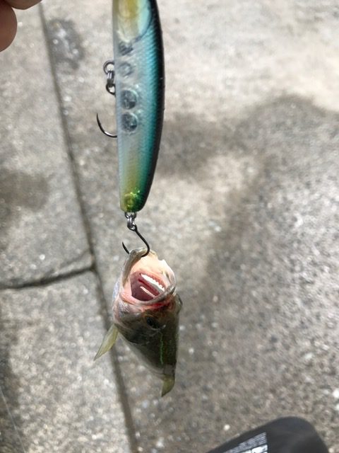 小さくても元気よく食いついてくれると楽しいです。ルアーと同じぐらいのバスが食いついたりして笑ってしまいます。“当日の最長寸はハス”には笑ってしまいました。すんません。ありがとうございました。