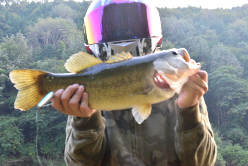 sum山岡さんの一言に緊張と空恥ずかしさが入り乱れつつ初投稿です。sumluresは京都生まれの琵琶湖育ちなのでしょうか、琵琶湖であっさりブラックバスが釣れました。そんな一言でレポートを終えると手厳しい一言が待っていそうなので詳細を申します。オートバイでツーリングが大好きで雨の日も寒い日もおかまいなく楽しんでおりまして、琵琶湖周辺を走るのも大変気に入っています。すれ違う見知らぬライダーが互いに手を上げ挨拶をするのは気持ち良く、琵琶湖一周が苦も無くできてしまいます。そんなことから琵琶湖の色々な顔を知っており釣人が多い景色もよく目にしますし、なにかが釣れそな雰囲気漂う景色まで。琵琶湖で魚釣りをしたくなりバッグに釣具を忍ばせてみました。16時頃一息入れるつもりで水辺に下りてブラックバスがいそうなところへ投げてみますとあっさり釣れました。これではレポートが成立しませんね。近くに岩がありブラックバスが獲物を待ち構えているのかなと思いました。思いの外うまく投げられず何度目かで納得いく場所に投げられ、岩の近くにsuming-70Fが通ったところあっさり釣れました。いやこれではただのビギナーズラックですね。まったくそうなのですが・・・・・・。suming-70Fを選んだ理由は晴天で明るい時間だったので岩の陰に隠れるブラックバスの目の前を泳ぐように考えたものです。suming-70Fの色は暗いものです。その理由はそれしか持っていなかったからです。ゆっくり動かしました。あら岩に引っ掛かったかなと感じたあと、巻いても巻いても寄ってこないばかりか糸がどんどん出ていき、わーわーおろおろ。最終的には釣りあげるまで20~30秒くらいかかりました。一息入れるつもりでヘルメットはかぶったままで一息つくつもりが汗をかくことになりました。またこの場所で釣れるのでしょうか。初心者が思いつきそうなことですがそんなことはないのでしょう。写真のルアーはフラッシュバックだと思います。釣れたsuming-70Fを無くしたくなかったのですぐに付け替えたのがたまたまそれだっただけです。気分良く帰ろうとし入れ物を見るとsuming-70Fがない!慌てて周辺を探し事なきを得たのですが、付け替えた意味が無意味になるところでした。いまの琵琶湖周辺はキンモクセイの香り漂う場所にも出会います。またバッグに釣具を忍ばせて走ります。