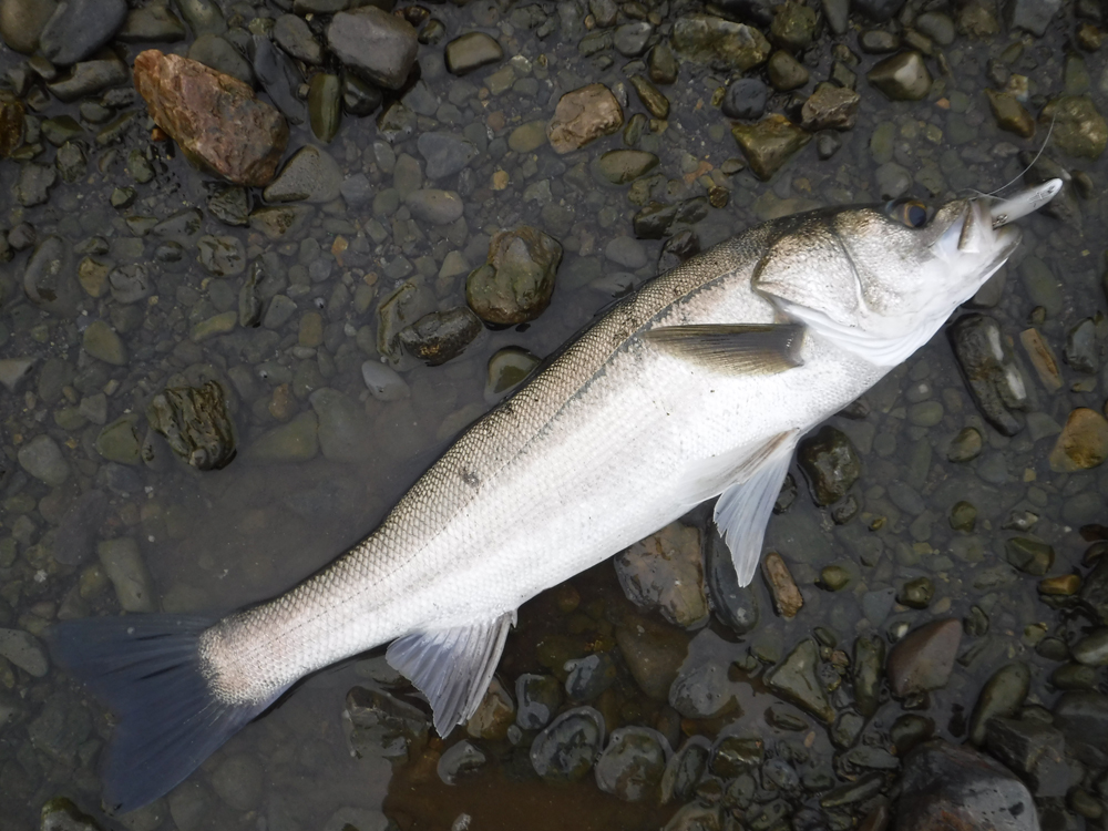 お久しぶりです。九頭竜釣行以降はショックで簡単な釣りばかりしていました。いつもいい加減な包丁で魚を捌いて身を潰すことが多かったので最近柳刃包丁なるものを購入しまして、ってなると何か捌きたい、秋の味覚を堪能したいと日本海へ足は向いてしました。恒例の落ち鮎を捕食するシーバス釣りです。フラフラと泳ぐ落ち鮎を見かけることはありませんでしたが、濁りも入りいい雰囲気です。コトカスミデアムとサミングを交互に使い釣り上がって行きましたが反応がありません。大概叩いたと思います。トップはどうだろうとフラッシュバックに変えて一投目、ボゴン!!!!と出ました。見えてなかったのね。。。その後2回出ましたが下手くそでのせられず。。。良いのか悪いのかわからない釣果ですが包丁は試せました。そうそう良かったことはひなびた漁港の外れで鳶以外の猛禽類を目撃したことです。非常に綺麗で羽をバッと広げた時の優雅さは鳶とは違うものでした。帰って社員Aくんと調べてオオタカと判明。結構嬉しい。次は双眼鏡持って行かんといかんですね。
