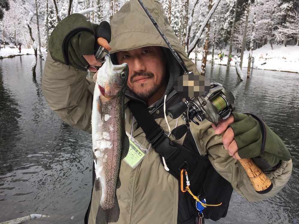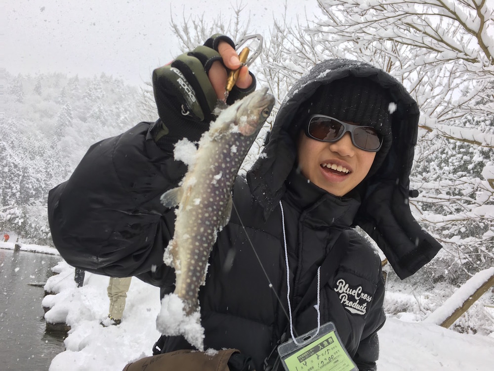ひぃ君へ。」たぶん初体験の管理釣り場で、ミノーのみで挑んで16匹は上出来です。素質あります。雪の方が雨よりましですが、濡れた手の冷え方は半端でないのによく頑張りました。アレが一段落したらサクラの咲く春です。サクラが咲き出すとバスが釣れ出します。風邪を引かない様にして下さい。ありがとうございました。