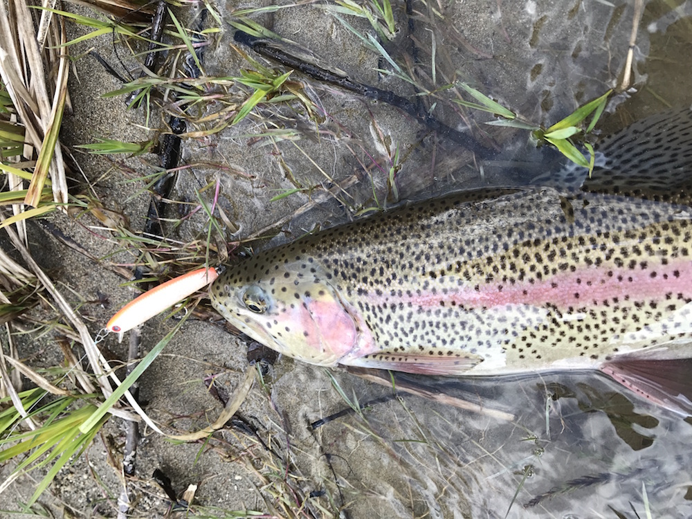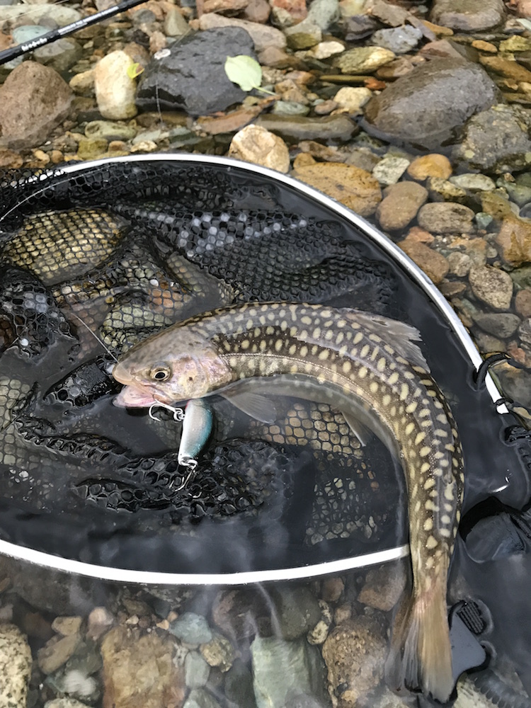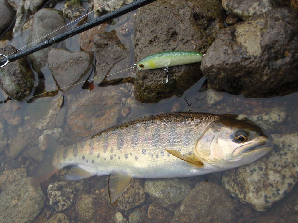 釣り人も知らないsumlures、魚が知っている訳がない、珍味かもしれんと食いつきます。サミング70より太っちょのチャンクもニジマスが好きです。是非本流でお試し下さい。そろそろ禁漁、産卵に向けて荒食い、うっすら婚姻色、でも釣りたい。これからも宜しくお願い致します。ありがとうございました。
