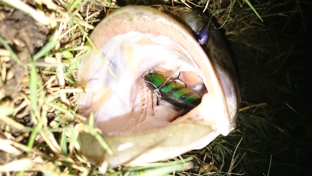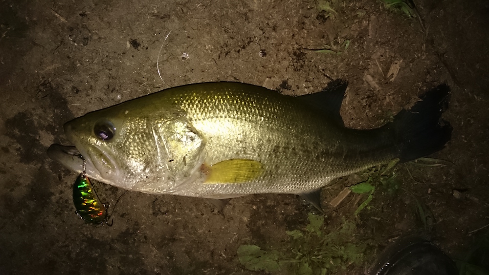 失礼致します。ずいぶん涼しくなりました。夕刻浜辺に立ちますが、ちらほらベイトがいるもののバスは追ってない模様。そんならばと、ウィードを求めて移動し久しぶりのポイントに入ってみます。早速、サミング70Fに小気味よいアタリ。ですが後が続きません。もうちょっとアピールが欲しいかもということで、サムバイブ75Fに変更。巻きながら掛かった藻をほどくように引いていると、ほどけた瞬間に抵抗がなくなり、あれ?直後にグーン。久しぶりのこのアタリ方、、、好きです。パワフルファイトの末揚がってきたのは48センチ位。おんなじ方法で2フィッシュ追加もその後続かず。時間帯ですかね?難しいです。また行ってみます。