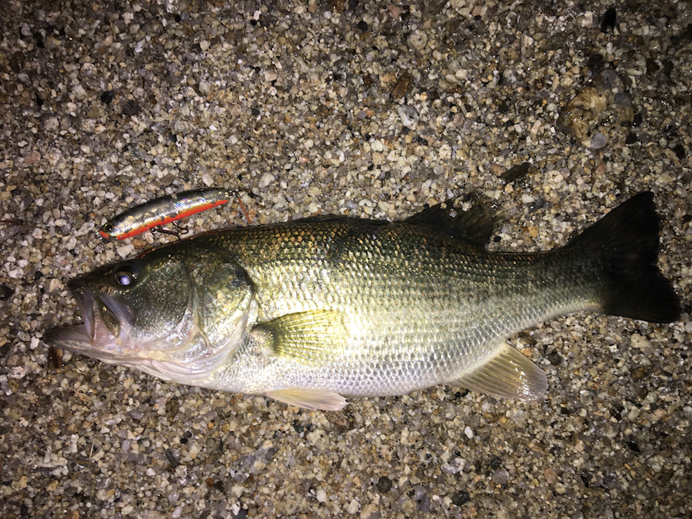 余程厳しいのでしょう、久しぶりのレポートとなります。貴重な1匹の引きを楽しめて良かったです。リップの欠けたのが良く釣れるんですか、欠けてないルアーの立場がないじゃないですか。変速的に泳ぐんでしょうか、それが効くとなると手持ちのルアーを改造せねばなりませんね。リップロスを使って頑張って釣ってレポートを下さい。楽しみにお待ちしております。先日の23日に内湖で12時位から16時45分まで釣りをしました。始めて暫くして少し作ってみたバイブレーションにアタリが、その後何も無く時間が過ぎ、15時位に着底後巻き始めて根掛かり、何があるんだろう。かなりの回数を投げているのにおかしい、ラインテンションを保つと動く感じがする。食っていました。この季節にこの場所で初めての体験です。取込が厄介な場所なので弱らせて岸まで引っ張らなければなりません。無理矢理水面で空気を吸わせようと、2度水面近くまで引っ張り上げましたが頭を下げて潜られバレました。力一杯入れたから手首が痛くなっていました。その後13Gのダブルピンクに変えて2度バイトで時間切れとなりました。ありがとうございました。