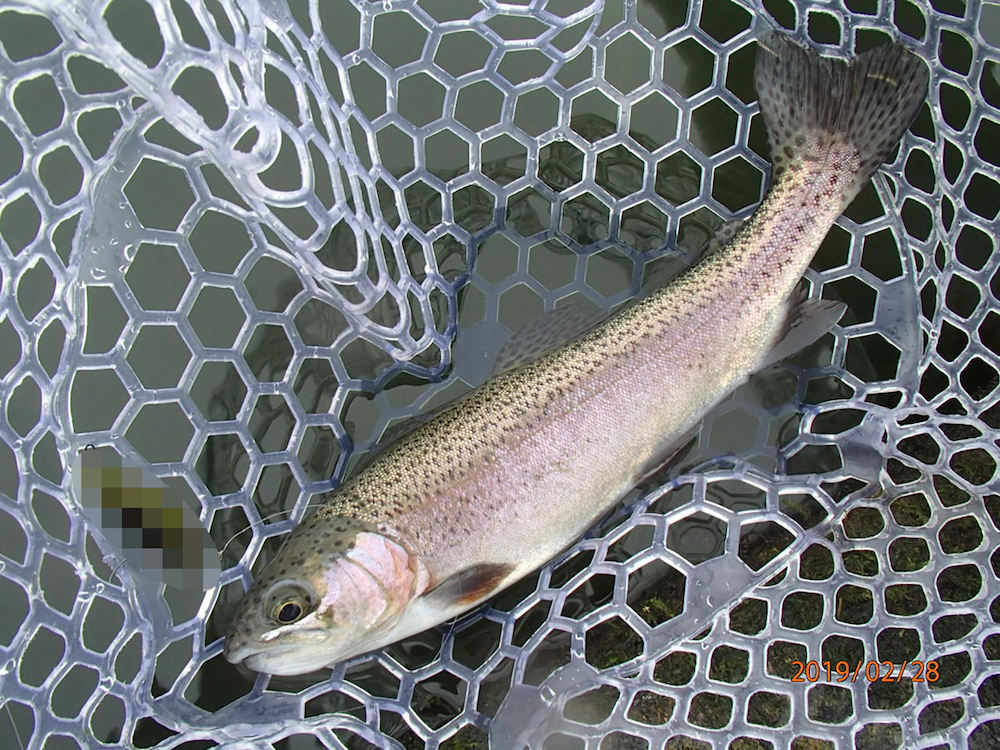 るようになりました。そこで今日は午後に授業参観があるため仕事の休みを頂き、朝の一時だけ朝霞ガーデンさんに行ってきました!しかも出遅れ気味でのスタートとなり、いい時間を逃してしまったのですが、○秘を試したくて仕方ありません。平日で冷たい雨も伴いお客さんは少なめ、エリアの勝手もわかっていないため空きスペースを数投して探っていきます。今回はロストするわけにはいかないため、52ULにナイロン5lb、そしてボトムまで攻めないと決めて、中層から上を探ってきました。まずは○秘の軽いタイプ、雨で水温が下がった様でしたのでゆっくりと引けて動きを確認しながら引いてきます。いいですねー。魚はかかってくれるのですが取込に問題あり。バラシてしまいます。今度は重いタイプを試すと当たりの数が急に増えます。レンジが下の様でしたがロストするわけません。そこで別のタイプの○秘、こちらはタダ巻きが良い様でした。引きたい層を引きやすく、すぐに2本釣り上げることが出来ましたよー。今日はこちらのタイプの日だったようですね。いろいろ試しているとあっという間に時間となってしまいました。また試しに行ってきます!