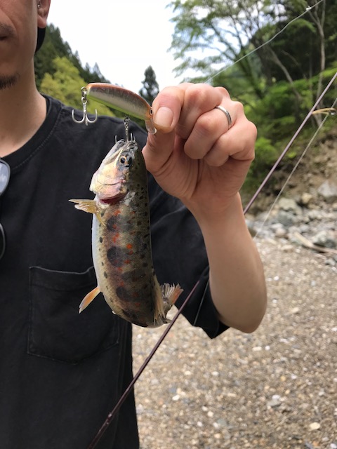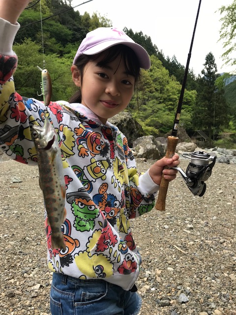 ゴールデンウィーク最終日、嫁と子どもが大自然の中に行きたいという事で行ってきました。奈良県吉野郡川上村、木地ヶ森渓流釣場。娘がサムルアーズで釣りたいということで、S45cwからはじめますがフッキングにいたらず、サミング50cwに換えると果敢にアタックして来て、子供でも釣り上げる事ができました。ルアーのトレースコースを変える事で魚の反応が違う事に少し興味を持っているようでした。子供の中で、釣れるルアー=サムルアーズとなってるみたいです。今回もサムルアーズさんのおかげで楽しい休日を家族とすごせました。ありがとうございました。