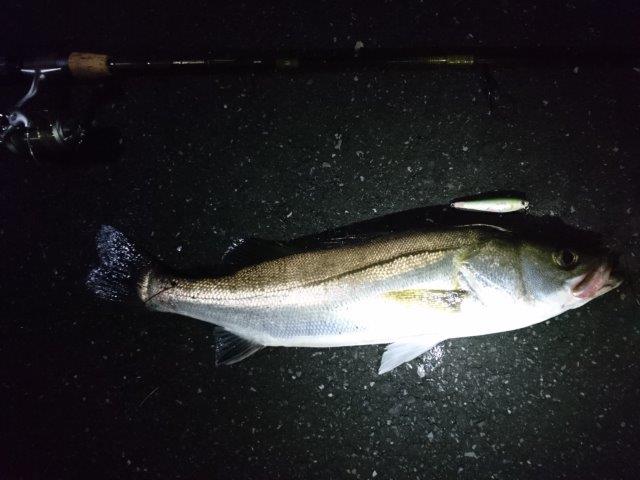 6月頭頃だったかと思います。夕方暗くなり始める時間帯、たまたま娘との散歩中に水面を群れて泳ぐボラの子が何かに捕食されているのを目撃したのは。ボイルの様子から予想はついたのですが、まさかこんな場所にも上がってくるのかと。日中は鯉がゆらゆら、希に雷魚がぷかーっと浮いてる姿が見られる市街地を流れる決してきれいとは言えない川なんです。しかし正体が気になってしまい毎週散歩がてら様子は見に行ってました。昨晩夕食後、満潮から下げ始めたタイミングで釣りを開始。水面付近ボラの子は意外にも少な目。ただ何度かの下見で分かったのは水位が上がるタイミングで間違いなくボラに付いて上がってきて定位置で待機し水位が下がりだしてから本格的に食事して帰って行くような感じであること。あまり追い回す様子はなく、まとまった数で泳いで来るのを効率良く食べるために待ち伏せしているのかな。表層では反応が無く、2匹はFB60cwを少し沈めて漂わしながら軽くチョンチョンしながらの巻きで、3匹目はマル秘のただ巻きで釣れてくれました。多分期間限定ではないかと思いますが、また散歩ついでに調査してみます。