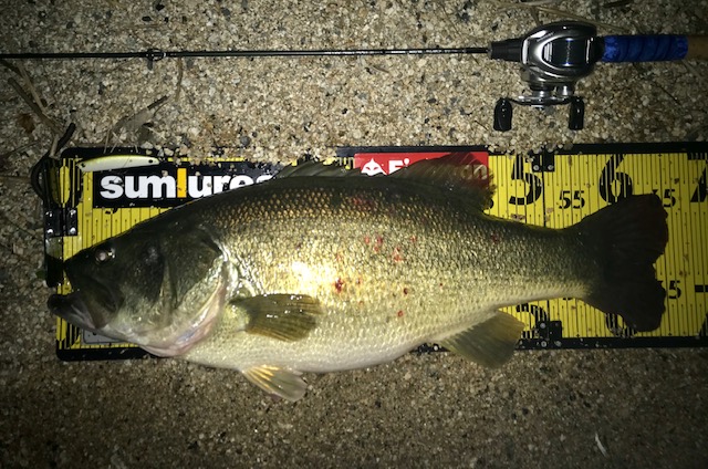 秋の連休前の平日、どうしても行っておきたかった夜。僕にもいつかはと通い続けた湖西の浜で遂に大台に出会う事が出来ました。ポイントに到着すると先行者の方がおられ少し離れた所でサミング70Fを投げると幸先よくケタバスがHIT!魚っ気はあるようでした。少しして先行者が移動され狙いたい立ち位置に移動。少し沖ではベイトかハスかの波紋が確認できます。いくつかルアーローテーションしながらコトカスミディアムで沖のワンバイトを狙おうとキャストしていると手前5mぐらいのところでベイトが追われてる!慌ててルアーをピックアップし、その辺りにキャスト。そのワンアクションでゴボッ!と強烈なバイト!距離が近かったので無理にやり取りせず落ち着いてドラグを使いながらやり取りしますがエラ洗いが今まで聞いた事ないような凄い音。最後はゆっくり浜にずり上げランディング。その瞬間にヤバイ!大台いった!と確信できるサイズ。手を震わせながら計測すると65cmの5210g!10年ぶりぐらいかの自己記録更新!夢にまで見た湖西のロクマル、10lbオーバーの素晴らしい魚でした。湖西の浜のデカバスに憧れ、その魚を真剣に狙われてる猛者の方々に憧れ、サムルアーズのルアーを知り、使い出し、目標としていた魚にやっと巡り会えました。これからもサムルアーズさんのルアーで湖西の浜で楽しいフィッシングライフを探求していきたいと思います!ありがとうございました。