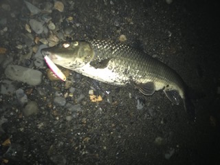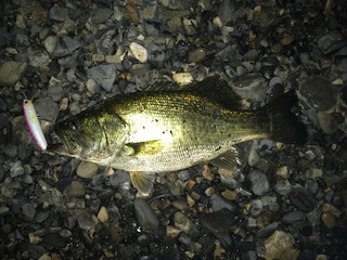 勝手にお世話になっております。1カ所目、いろいろ試してみたけれど全く反応無しです。2カ所目、流れ込みを攻めますがハスのみ、月明りでダメかな? 3カ所目、河口付近でコトカス 、コトカスミディアム投げますか反応無し・・・サミング70Fに変えてすぐニゴイがヒット、その後もサミング70Fを流れ込みに横切る様に通すとゴツンと当たりが合わすと又ニゴイかと思いきやバスです。慌てて慎重になりやり取りし46センチバス、サミング70F丸呑みでした! 再度同じコースを通すと、45センチと25位、追加して終わりました。ありがとうごさいます。