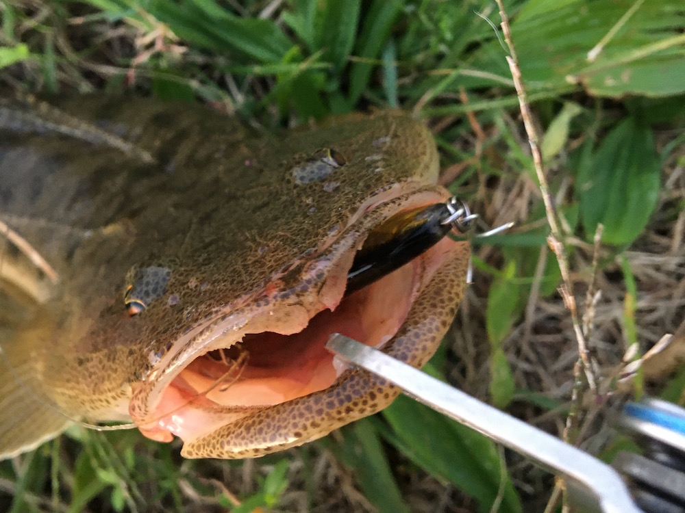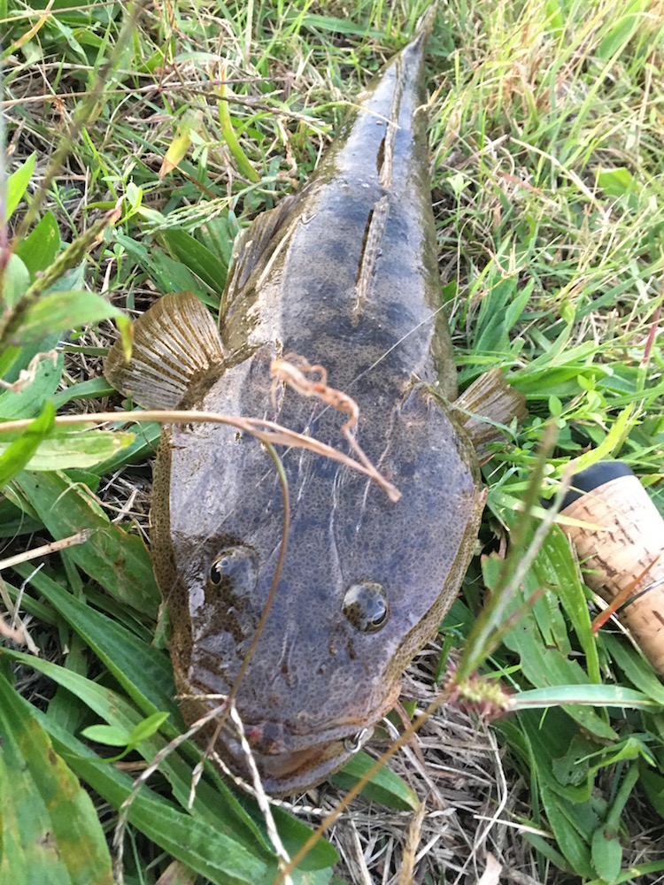 失礼致します。琵琶湖は私にはコバスでしか相手してくれません。シーバスレポートが賑わっているので、行ってみました。結果、やはりそんなに上手くいきません。何やら下流で工事なのかオイルフェンスが、、、駄目っぽいので隣の川へ移動。サムバイブで流れをゆっくり巻いて暫く探っていると、コンッとアタリ。軽い抵抗感なので、いつものウグイさん?と寄せていると、なんだかウネウネした手応えに。以前この上流でナマズが釣れたことがあったので、それかな?と寄せてみると初顔さん。かわいい眼をした平べったいのが釣れたのでした。また行ってみます。