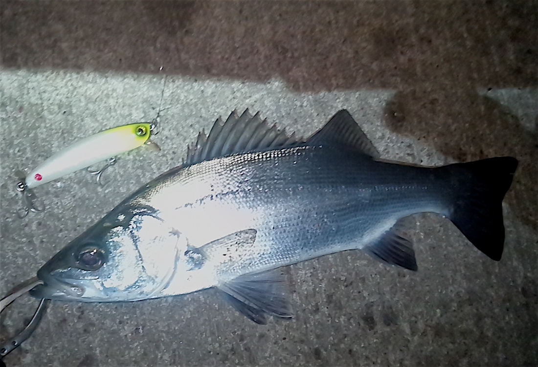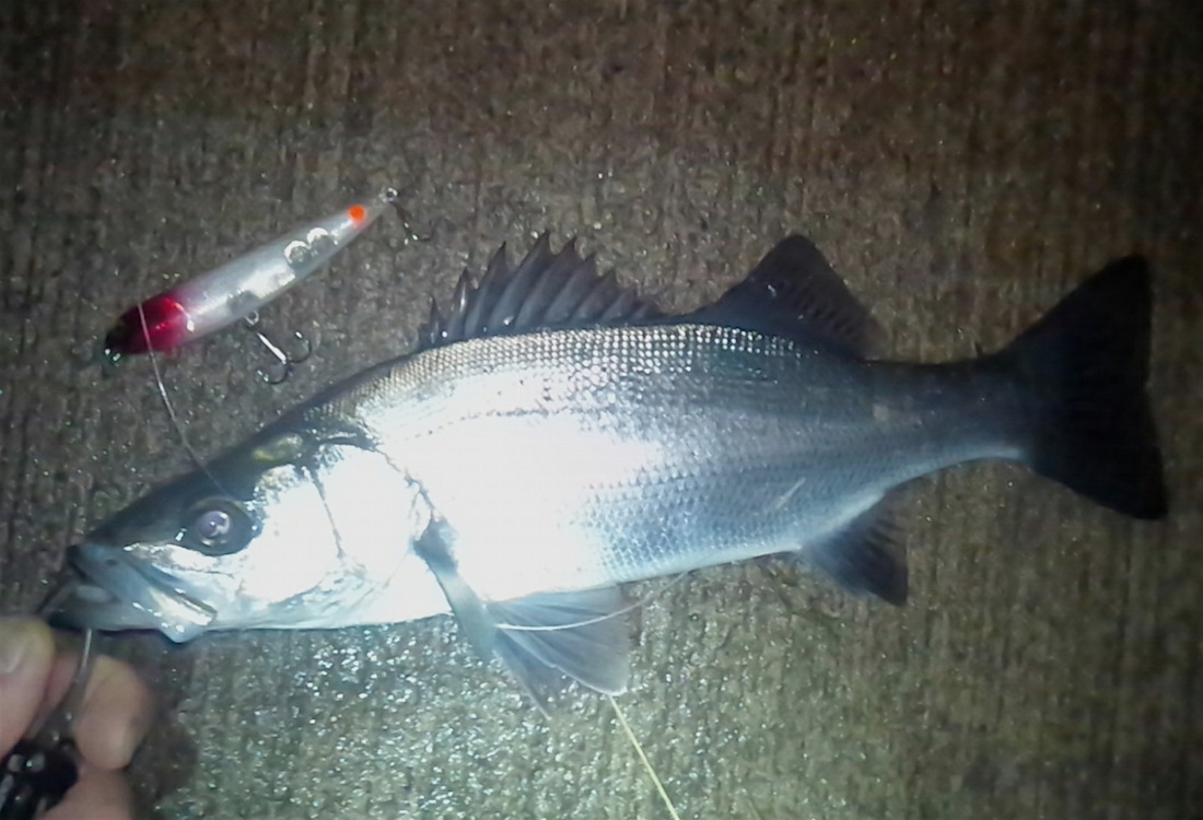 暖冬の影響なのか、関東では仲間内で青物が釣れたりして…ヒラスズキも例外ではなく、自分の茨城県が最北端とありますが、近年は福島でも上がるとか聞いております。釣果のほうですが、師匠がほぼ連日連夜にヒラフッコを爆釣すでに軽く50本はあげている~自分もあやかりたいといきましたが、表層およびトップで釣れるとは思いませんでした。また、だからと言ってただ投げて巻けば釣れるとは限らず、テクニックやキャストも必要なことを再認識~いかに魚を騙すと言うプラグの釣りはやはり面白いです!
