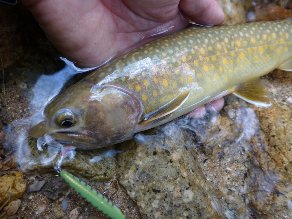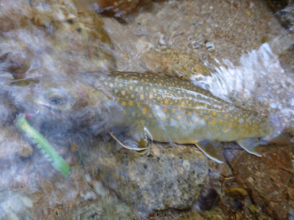 いつもお世話になっております。仕事終わりの夕釣りへ行ってきました。午前中誰か釣りに入った様で、反応が鈍かったですが川幅2m程の小河川で黄金三ツ口尺イワナが釣れました。グッドサイズが釣れましたら報告します。