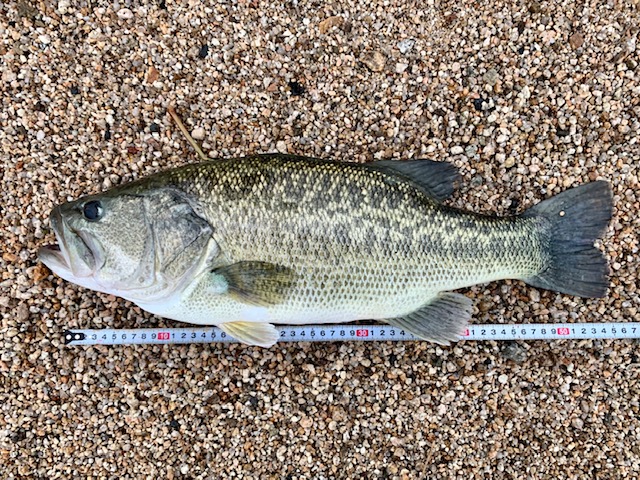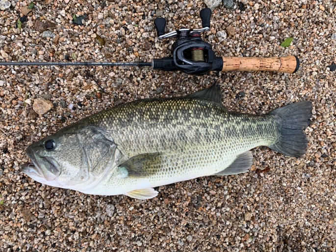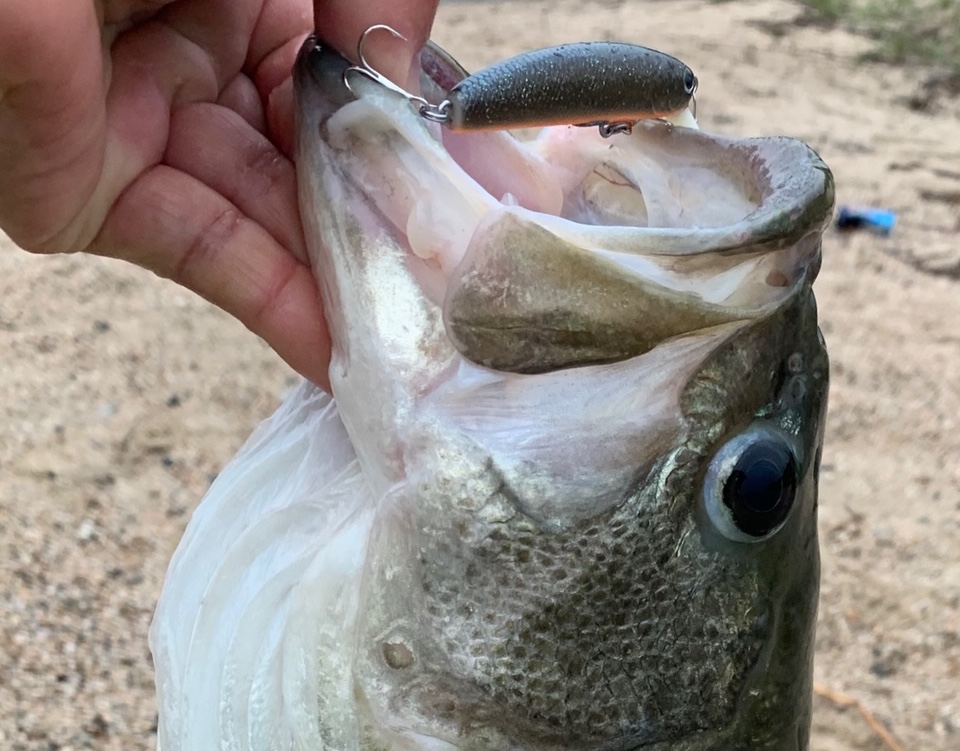 こんにちは。カナ吉です。久々のレポートです。中学生になった娘が久しぶりに琵琶湖へ行きたいというので、夕方に出掛けました。一ヶ所目、前日からの雨で良い感じの雰囲気。FB65で探りますが反応はありません。Suming-50にチェンジすると、この時期らしい綺麗なハスが掛かりました。二ヶ所目、NEW Suming-70SPを装着。狙いのコースを通した三投目でした。Light Trip 52UL-CSHE がブチ曲がります!強烈な引きと重量感!ニゴイ?かと思いましたが、エラ洗いで見えた魚体はデカイバス!ガッチリとルアーが口にかかっているのを確認できたので、慎重にドラグを調整し、取り込みの位置まで引き寄せて無事にキャッチすることができました!惚れ惚れするような傷のない綺麗なバス。こんなのが岸から釣れるのですから、やはり湖西のプラッキングは最高ですね!また出掛けてみます。ありがとうございました。