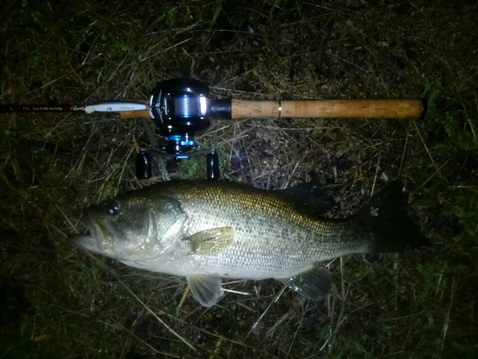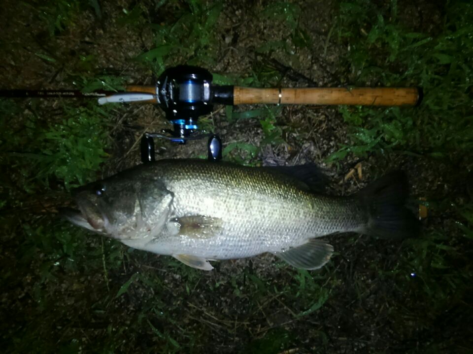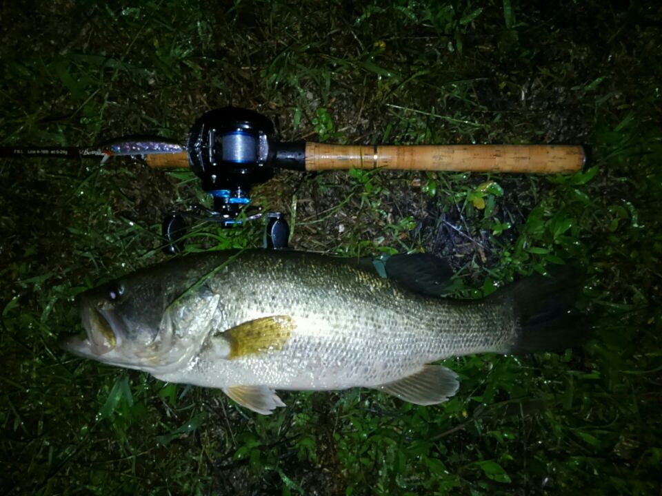 コロナで琵琶湖は自粛してましたが、そろそろいいかなと久し振りの琵琶湖です。日中は雨の強い時間帯もあり、もしかして今夜はチャンスかもと思って過ごしてました。夕食後に琵琶湖に向かいます。途中は割と雨が降っており、到着しても降ってました。ワンドの奥にある流れ込みですが、いつもより水量が多く少し濁ってます。流れの変化をサミング70Fボーンを何投かしてると嬉しいバイト!久し振りの引きを楽しみ、遊んでくれたのは45センチのバスでした。その後水面でボイルがあり、コトカスバナナを投げるとバイト!しかしフッキングしません。もう一投すると激しくバイト!なかなかの引きなので丁寧に寄せてくると、岸際でジャンプ!ランカークラスの風格あるジャンプです。最後は浜にずり上げ55センチゲットです。その後はサミング70Fボーンに45センチクラスが3匹と50クラスのニゴイさん2匹。他に2バラし。その後は雨が止んで釣り人が増えだし反応なくなったので納竿しました。久し振りの琵琶湖でしたが、思い出に残る釣行になりました。