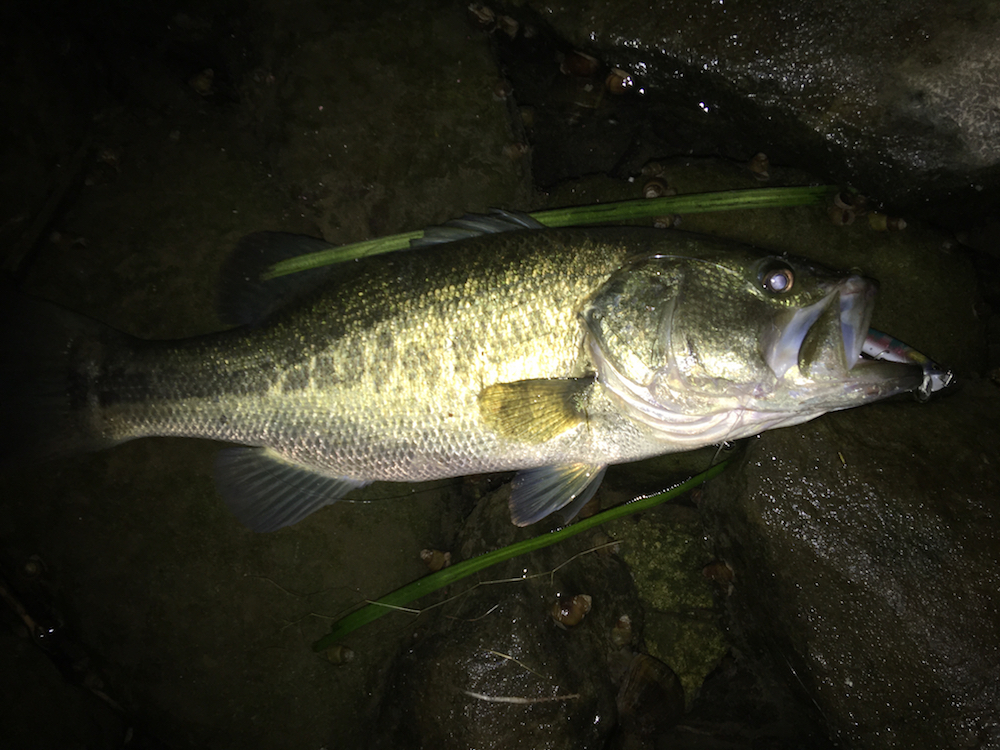 失礼致します。本日は夜釣りらしい時間帯に出撃できました。始めに入った処ではうねりが強く、余りよく無さそうだったのでそそくさと移動。久しぶりに入ったゴロタエリアでは、ウィードが所々頭を出しています。只、ここではほぼ凪だったので薄明かりの中でなんとか出来そうなかんじ。「こういうシチュエーションではお前の出番だ行っといでー」と、コトカスをウィード際に落としてポーズ&チョンのちデットスロー。数投目の巻き始めで引っ掛けてしまったので、ウィードを引きずりながら回収していると、ゴポンとバイトも針掛かりせず。バイトがあった場所にもう一度キャストし、ポーズ&チョンでボフの45位。ただし、その後は続かないのが残念です。また行ってみます。