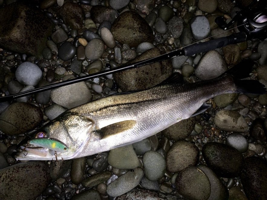 いつもお世話になっております。11月下旬は淡路島のスズキが産卵を迎えてハイシーズンです。今夜は潮周り的にチャンスなので疲れた体に鞭打って水道のポイントへ。さすがに先行者が5~6人もいますが、グループ釣行なのか1か所に固まって釣座を取っているので、離れたポジションを確保することができました。ミノーから探っていくも、近年の厳しい状況では反応してくれるスズキはおらず。やはり頼りになるのは底の地形を這うようにサーチ可能なサムバイブ15Gです。潮の流れが速いので、この重量は底からわずかに上を流していくことが可能です。以前は13Gをメインにしていたのですが、2gの重量増で飛距離が向上した分探れる範囲も拡大しました。もちろん、13G、SSも併用します。アップクロスからルアーが正面に流れてきたタイミングで思惑通りガツンとアタックしてきたのは61cmと、この時期にしては小型ですが近年の淡路島では納得のサイズです。